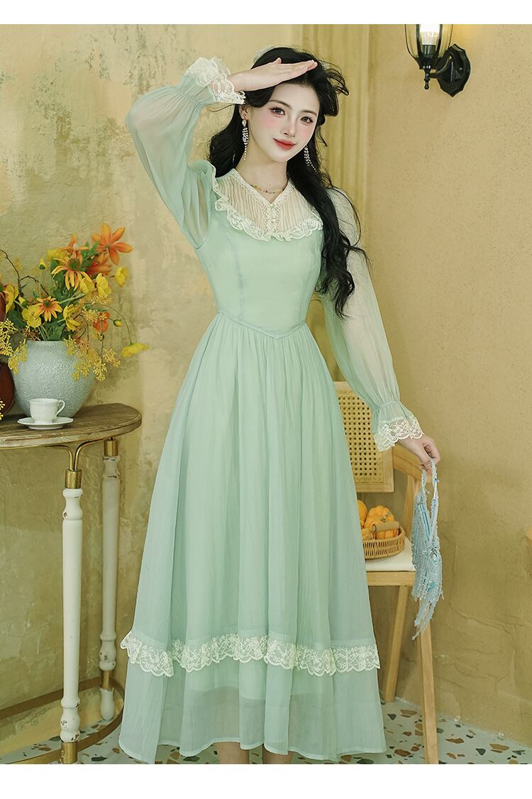 エレガンス ワンピース ハイウェスト 長袖 ロングワンピース