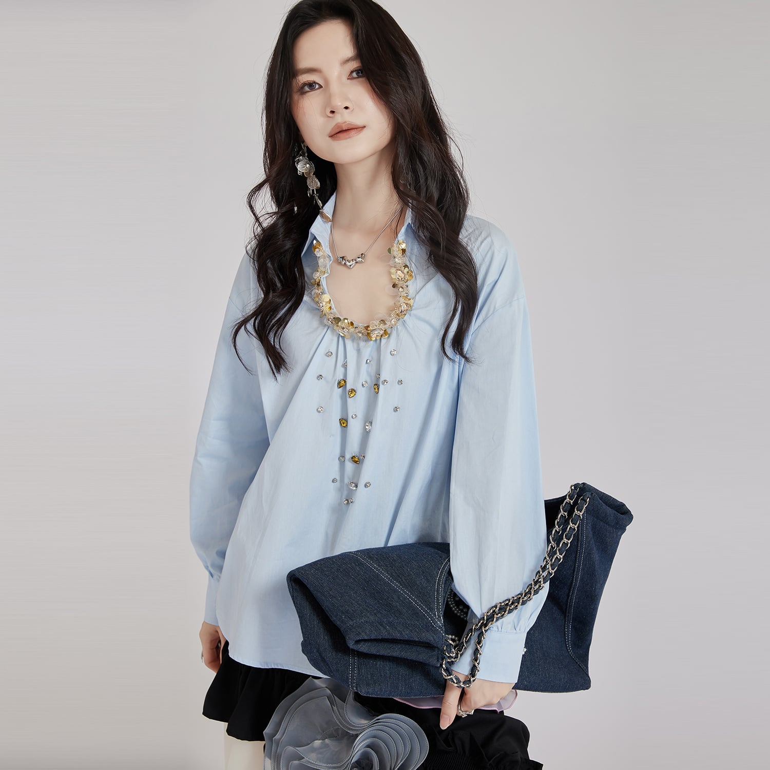 ブラウス 3色 ビーズ スパンコール 長袖 シャツ オリジナル 綺麗め 美品