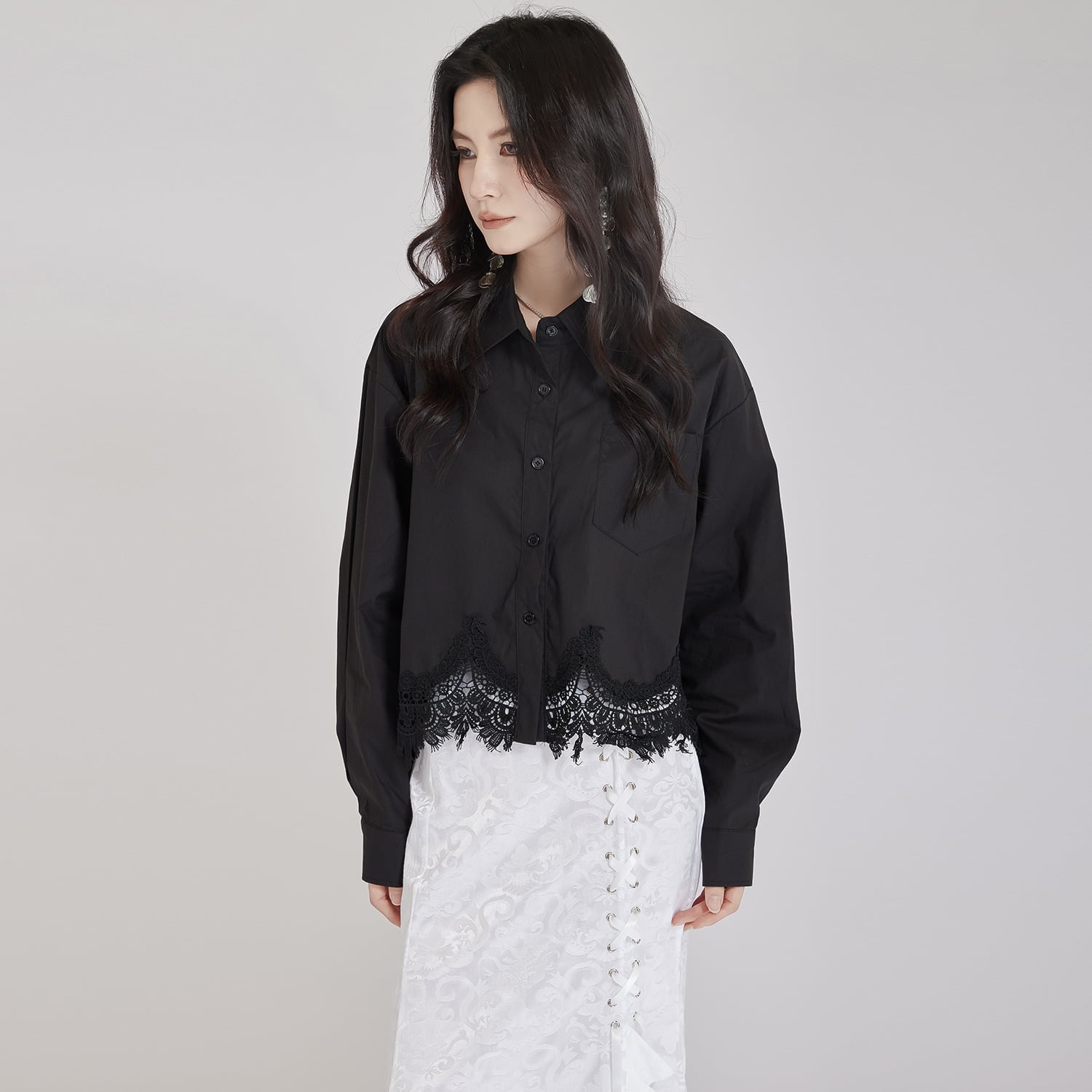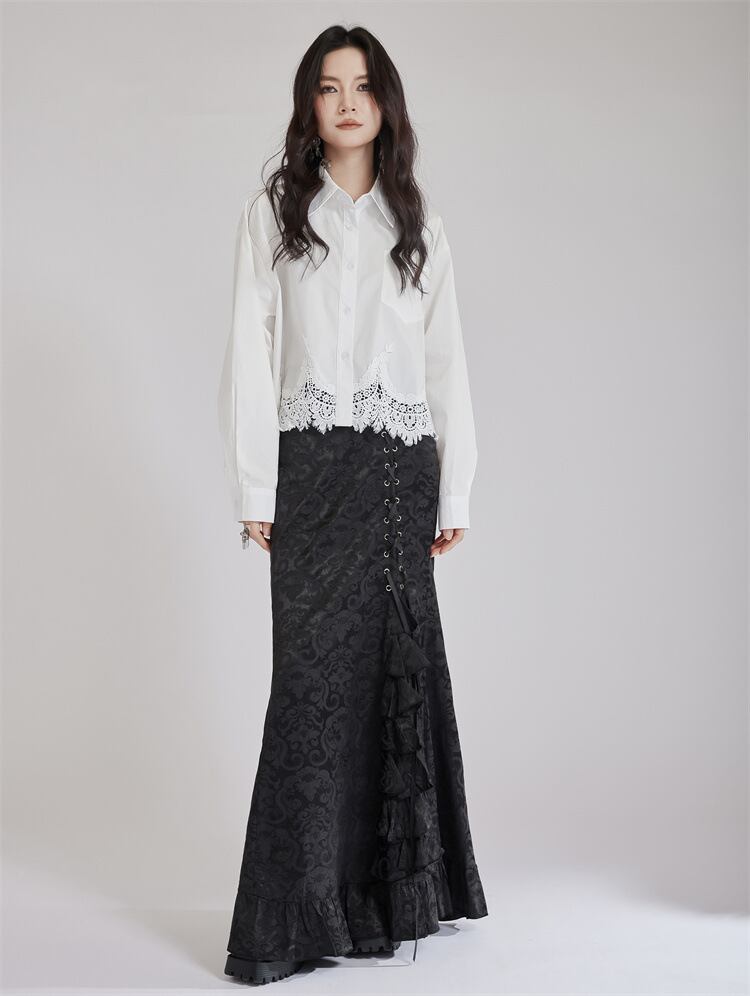 2色 ブラウス 透かし彫り 刺繡 長袖 綺麗め トップス