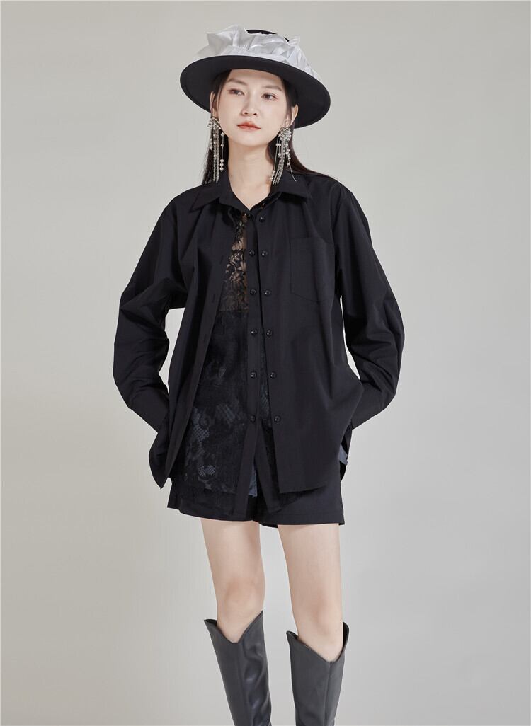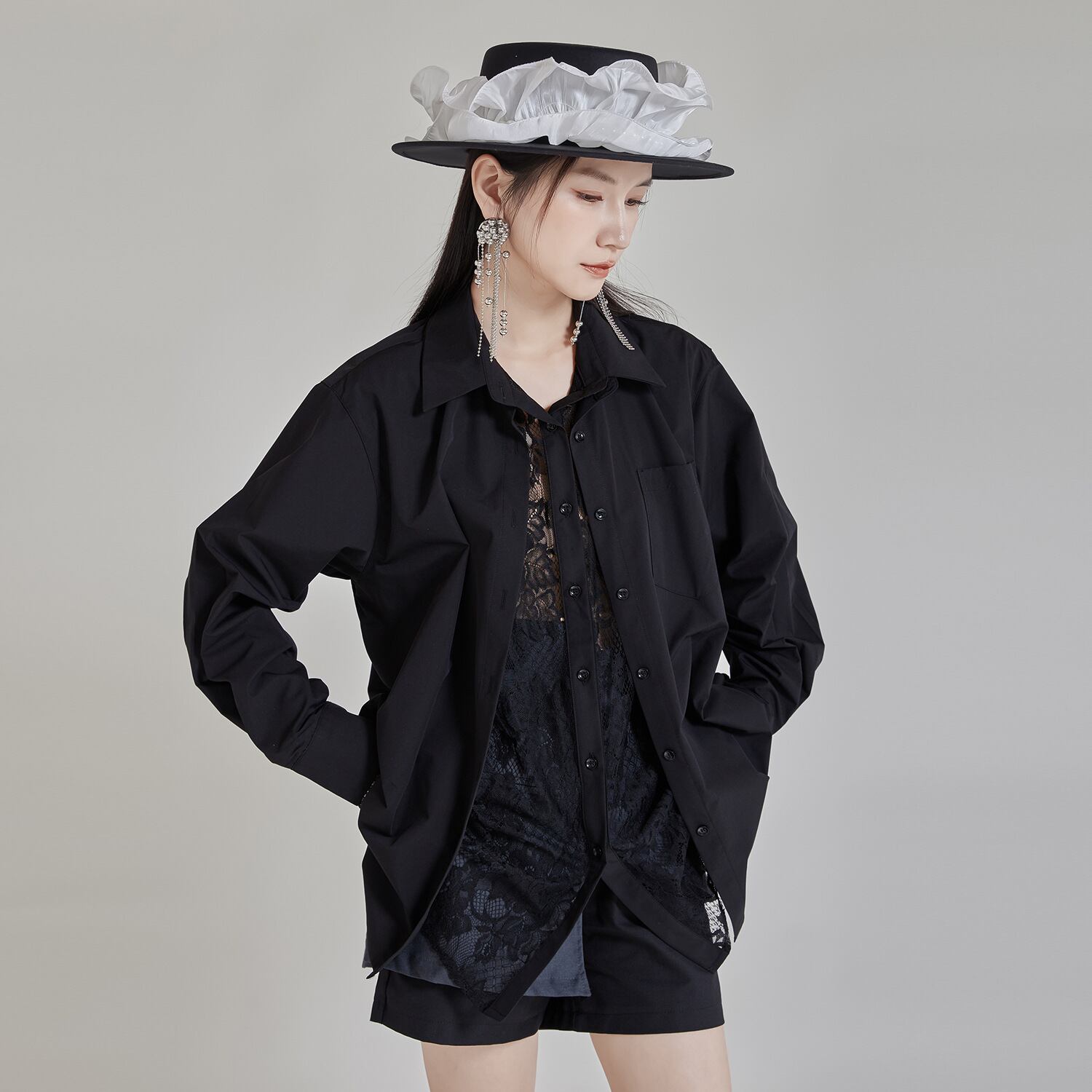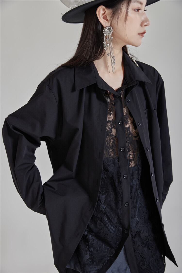 レース 切り替え ブラウス 長袖 ルーズ オリジナル 綺麗め 着痩せ