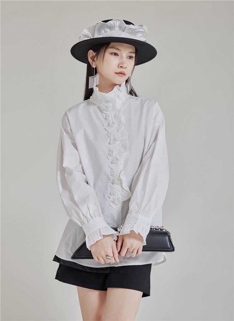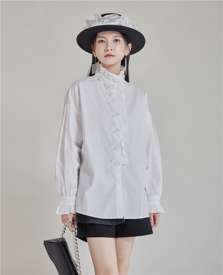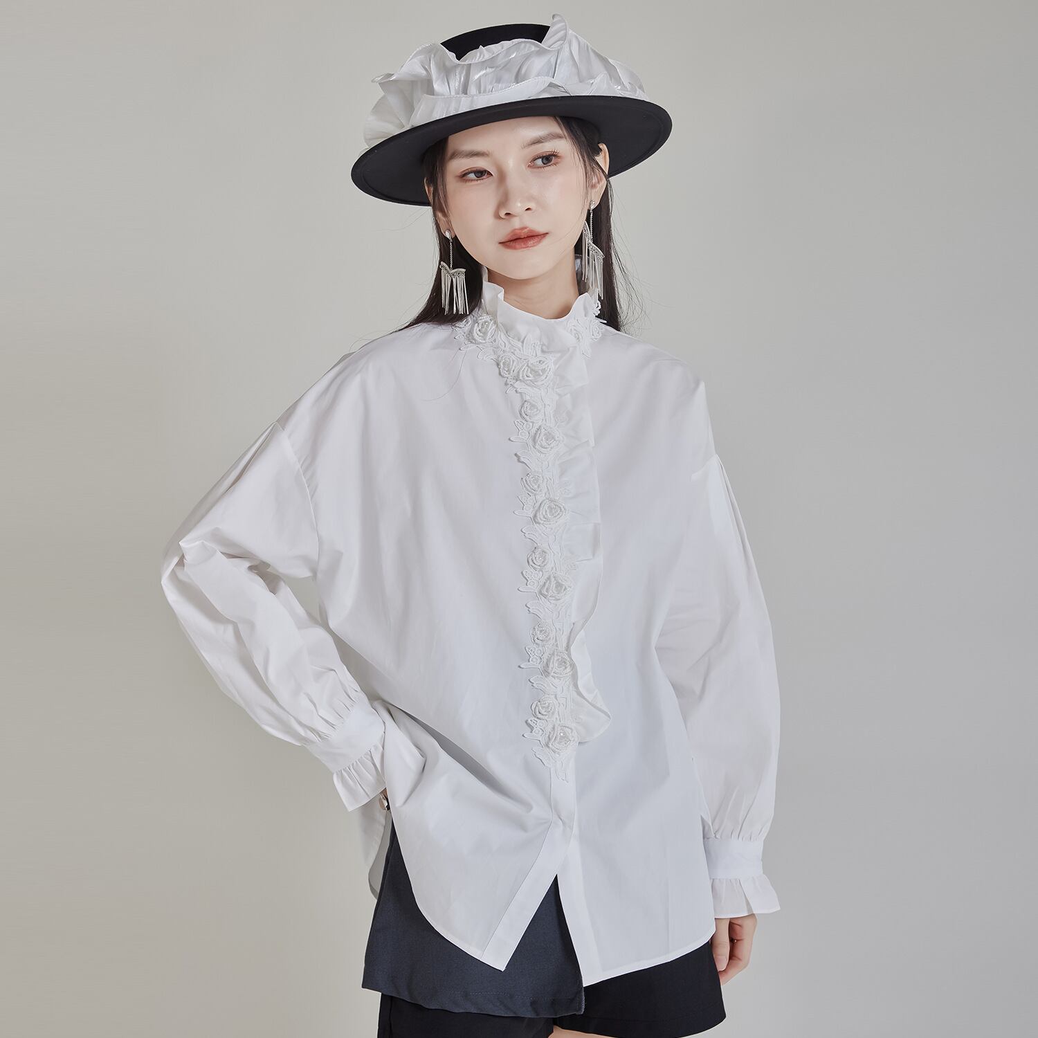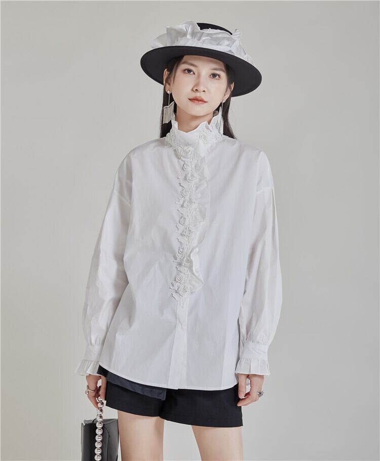 ローズ ビーズ ブラウス 長袖 ルーズ オリジナル 綺麗め 着痩せ