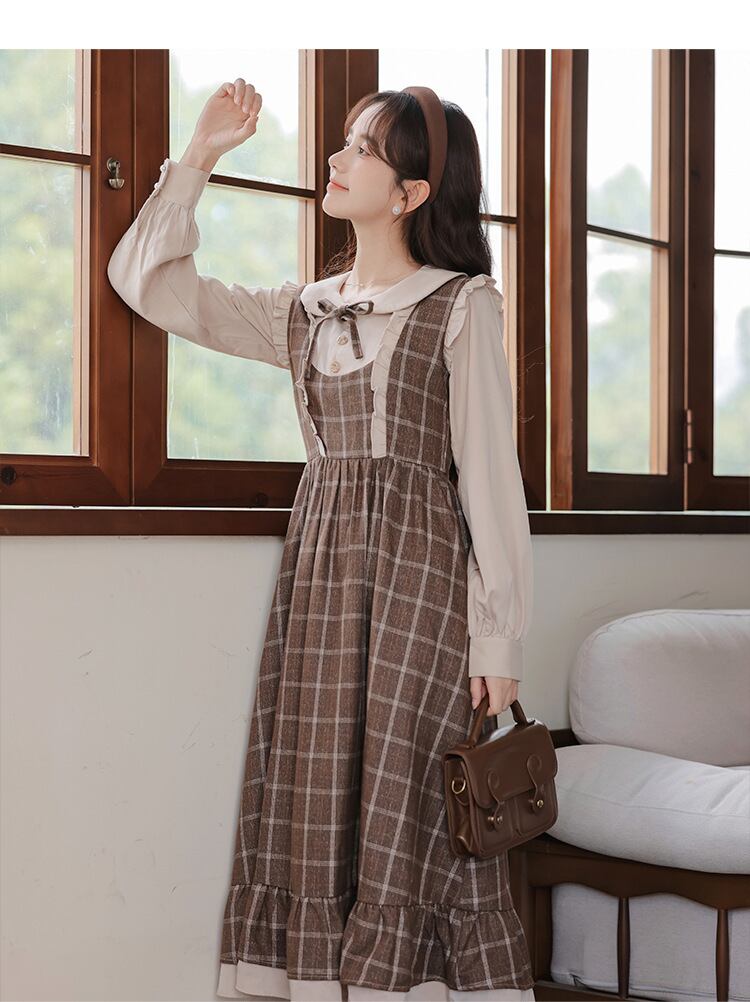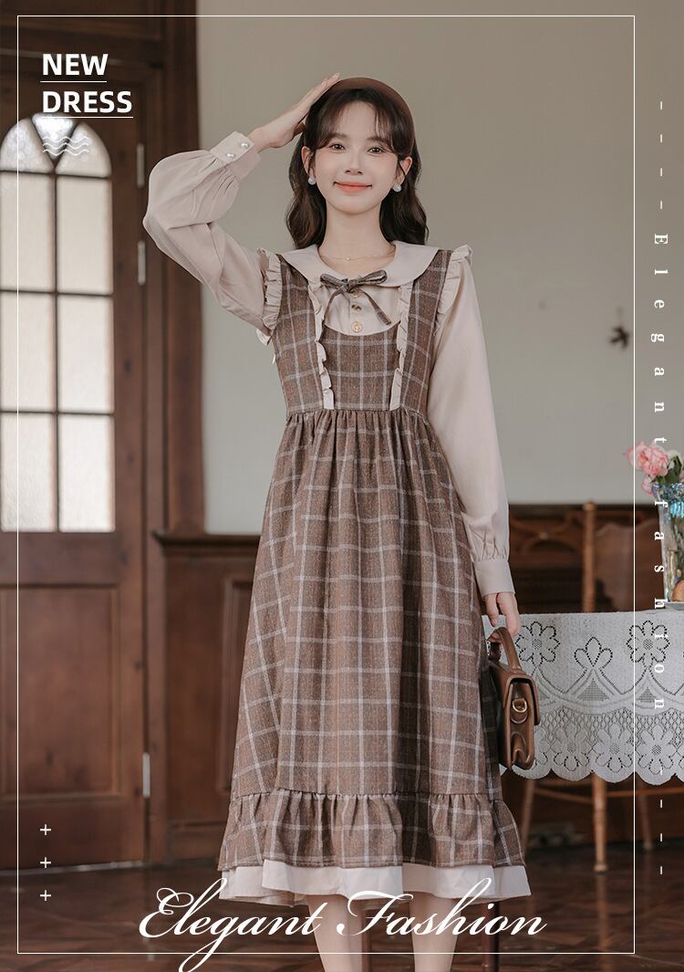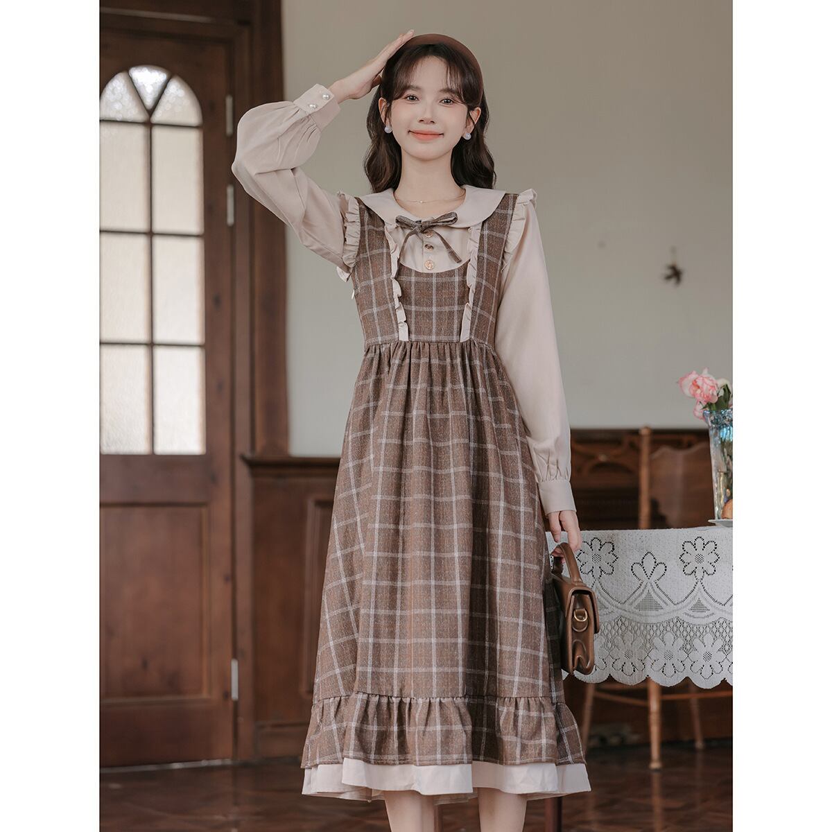 長袖 ワンピース ハイウェスト Aライン ロングワンピース