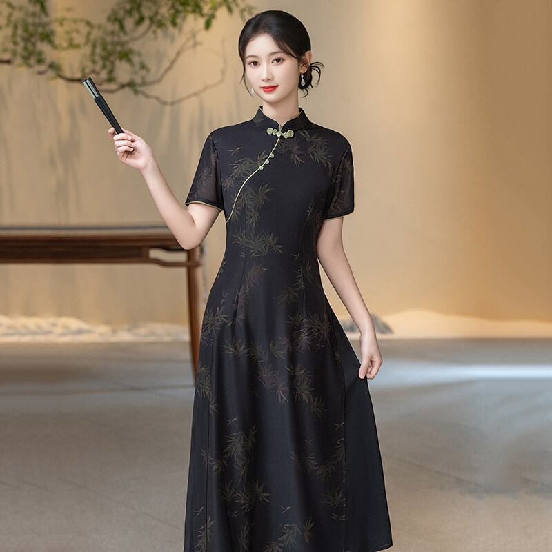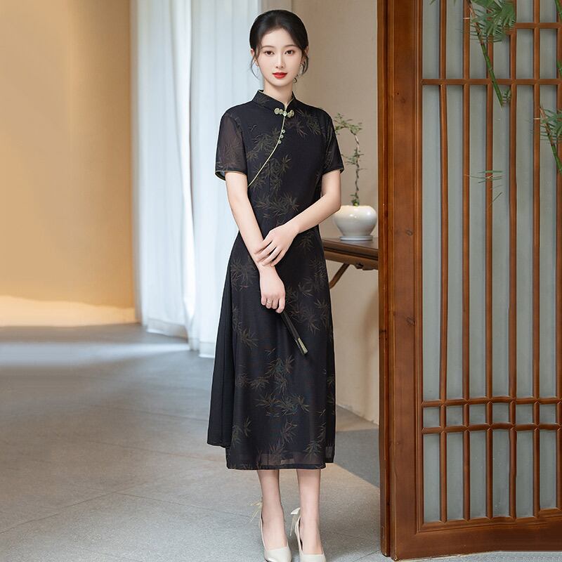 アオザイ スタンドネック 改良チャイナドレス ワンピース 洋服 着心地抜群