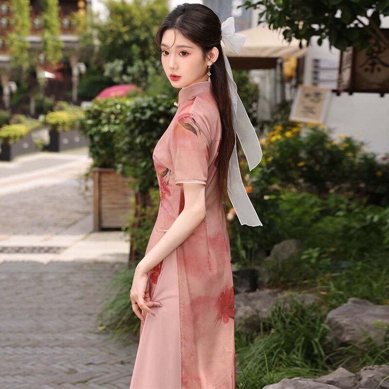 オシャレ アオザイ スタンドネック 改良チャイナドレス ワンピース 洋服 着心地抜群
