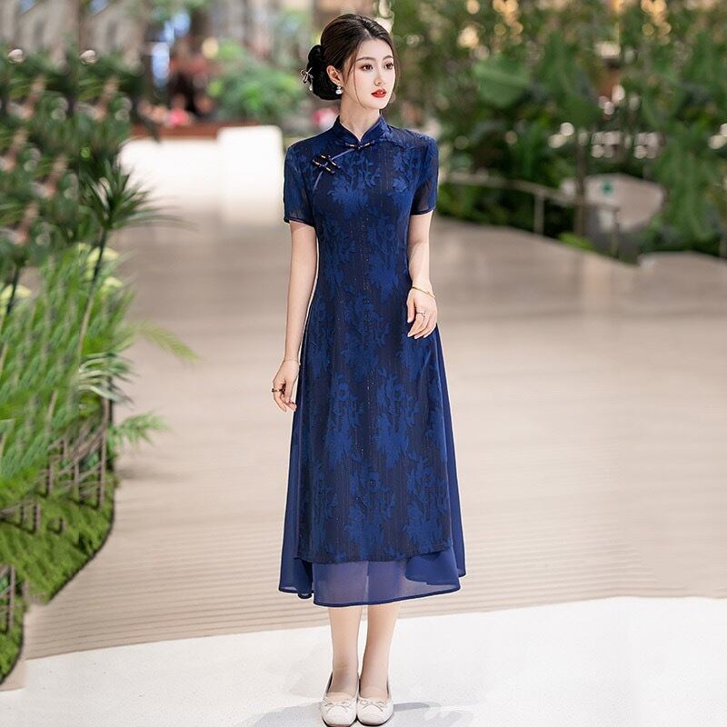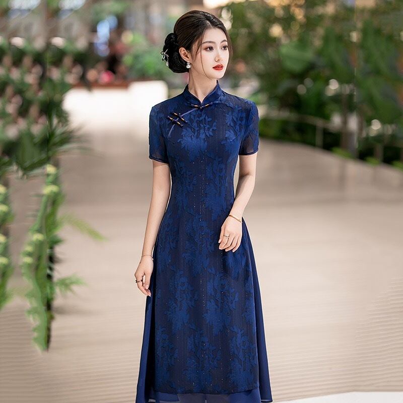 アオザイ スタンドネック 改良チャイナドレス ワンピース 洋服 着心地抜群