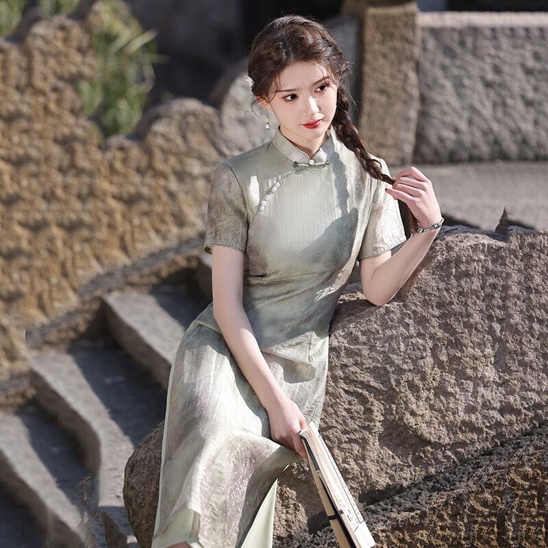エレガント アオザイ 2色 スタンドネック 改良チャイナドレス ワンピース 洋服 着心地抜群