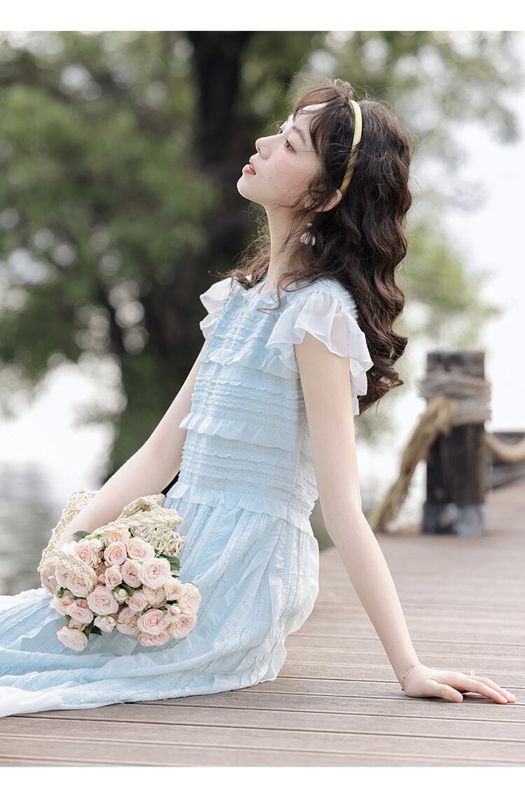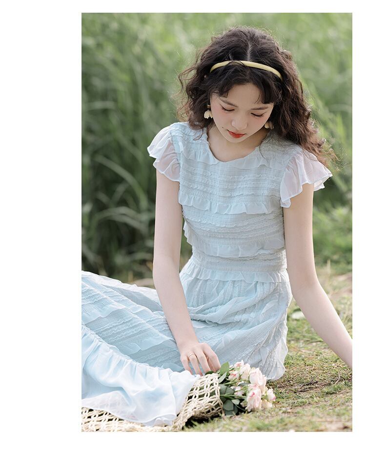 ワンピース 半袖 ハイウェスト Aライン 可愛い ロングワンピース
