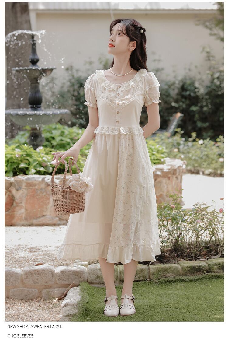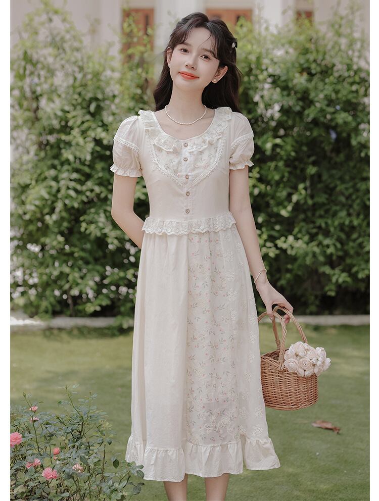 刺繍 ワンピース ハイウェスト Aライン オシャレ ロングワンピース