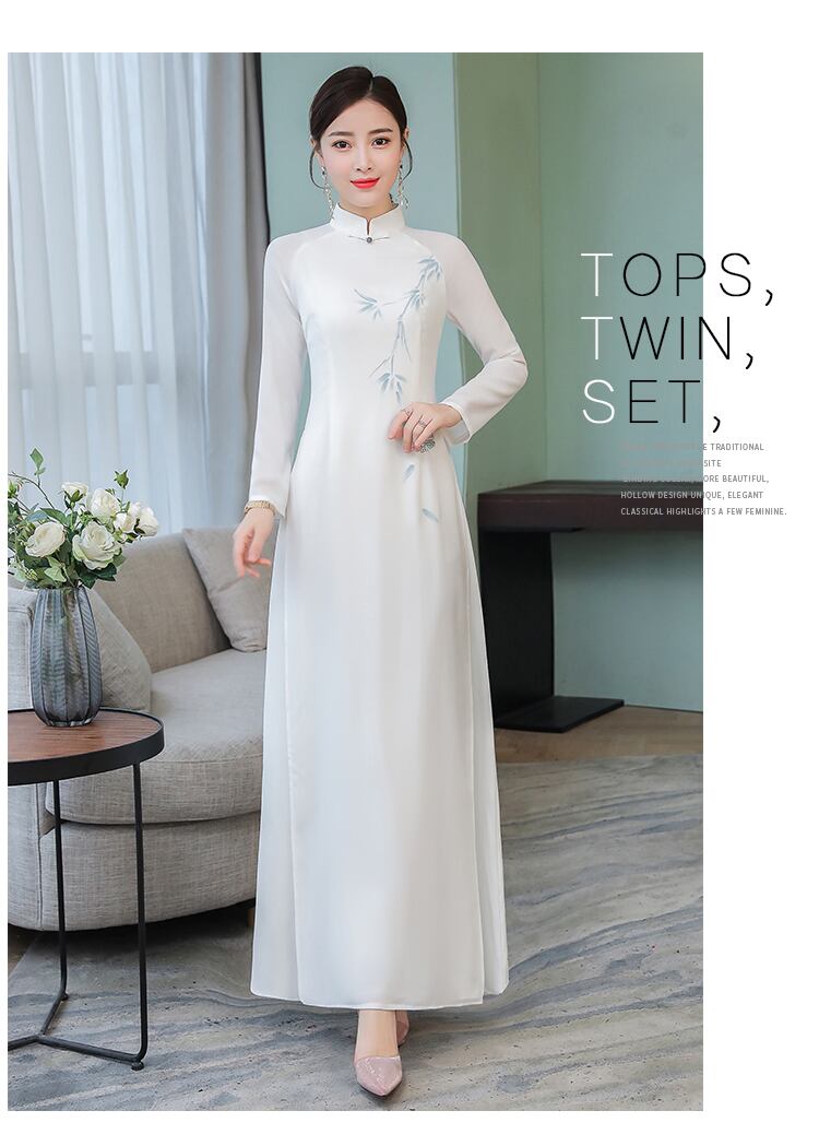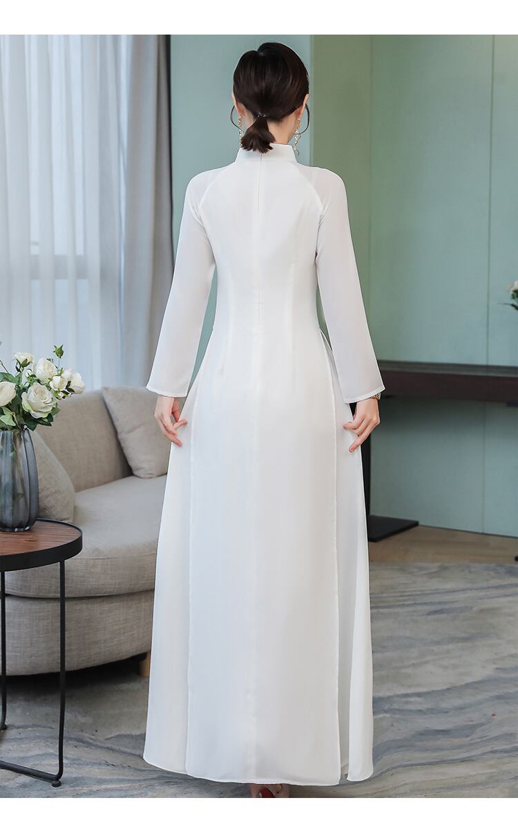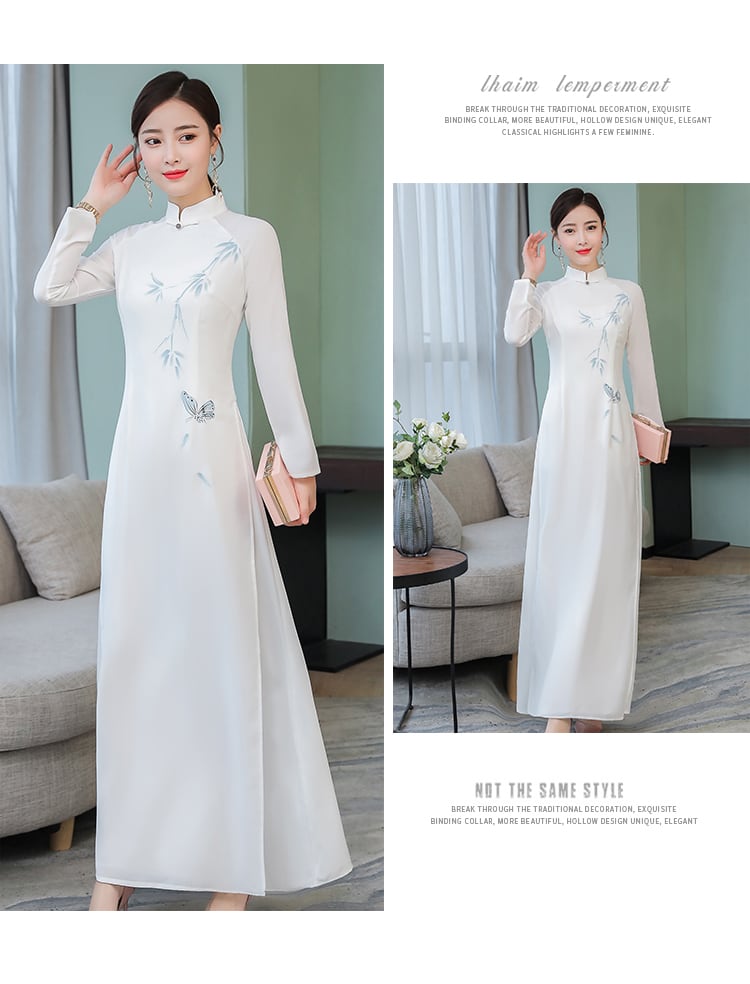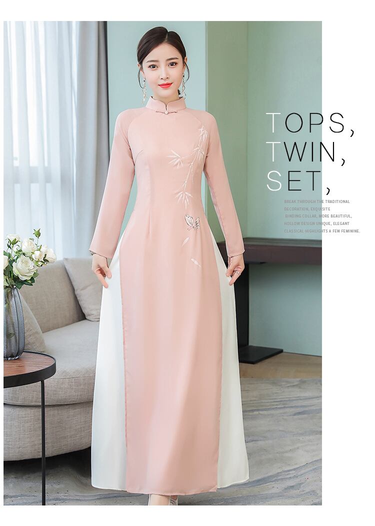 アオザイ 2色選択可 長袖 スタンドネック 刺繍 民族服 改良チャイナドレス 着心地抜群 大きいサイズ ピンク ホワイト