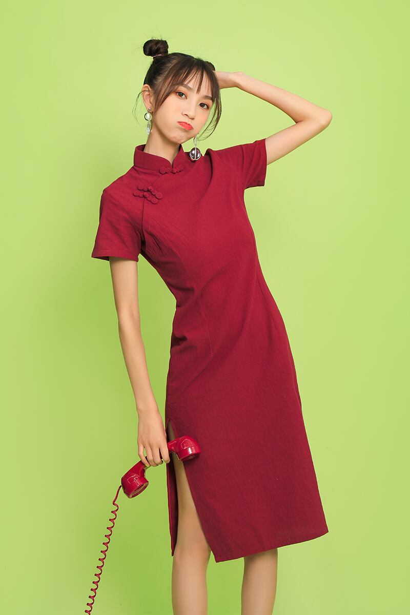 チャイナドレス 半袖 チャイナボタン ロング チャイナ風ワンピース 民族服 チャイナ風服 着痩せ 着心地抜群