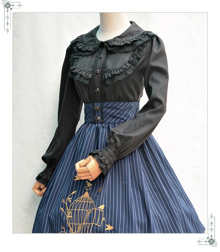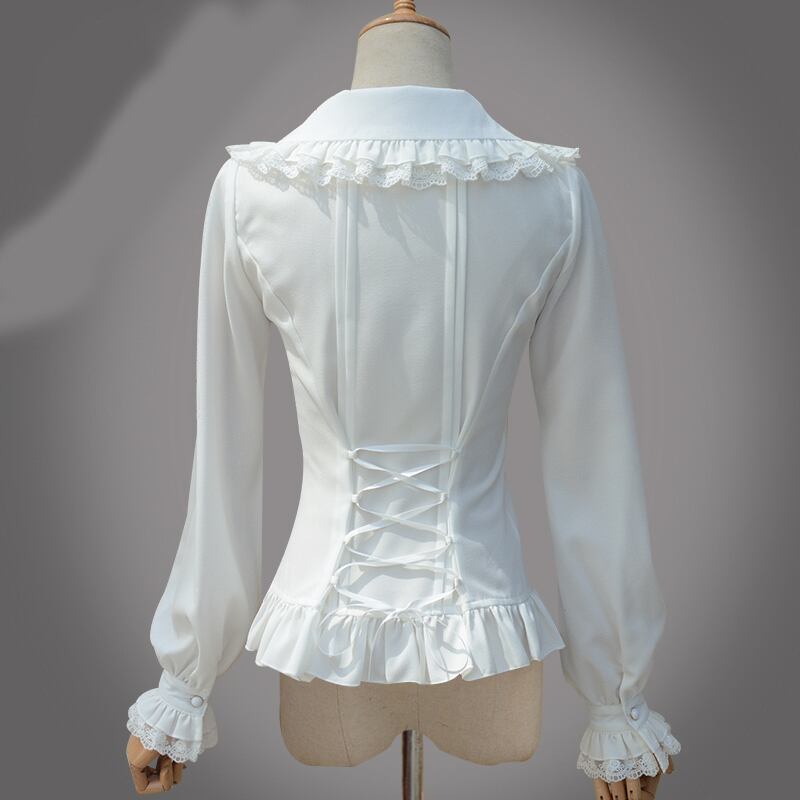 可愛い ブラウス 2色 長袖 ボートネック lolita blouse ロリィタ オリジナル lolita ロリータファッション お茶会 撮影 イベント 学園祭