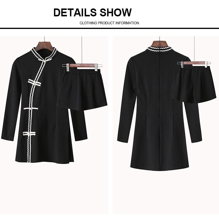 改良型チャイナドレス スタンドネック 長袖 ミニ 二点セット チャイナ風服 女子会 同窓会 お呼ばれ セクシー 可愛い
