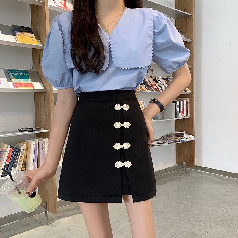 チャイナ風スカート ミニカート チャイナボタン オリジナル Aライン 合わせやすい