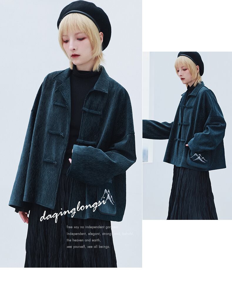 チャイナ風アウター 長袖 チャイナボタン 刺繍 フード付き折り襟 チャイナ風服 中華服