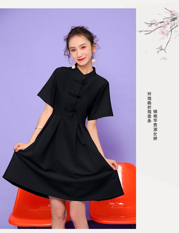 チャイナ風ワンピース 2色 可愛い 半袖 スタンドネック Aライン ワンピース チャイナボタン チャイナ風服 オシャレ