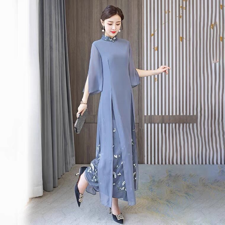 アオザイ 改良型チャイナドレス スタンドネック 民族服