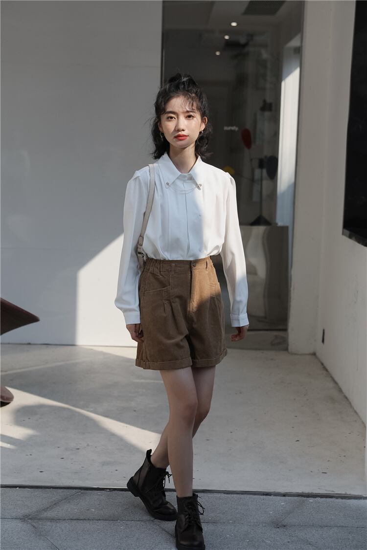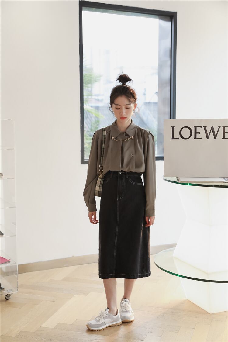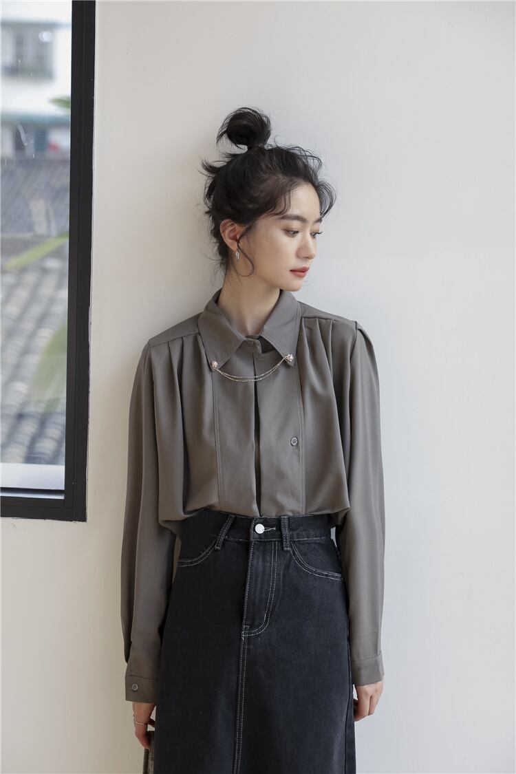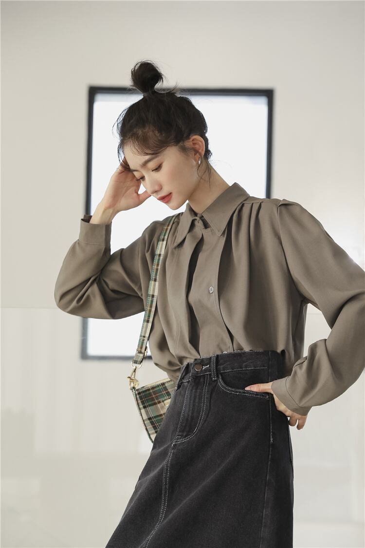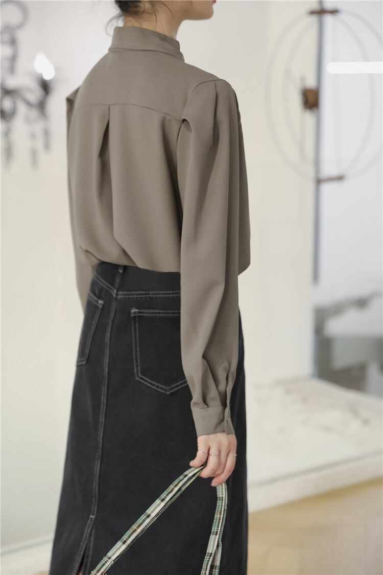シンプル ブラウス 2色 ランタンスリーブ 長袖 かわいい オリジナル