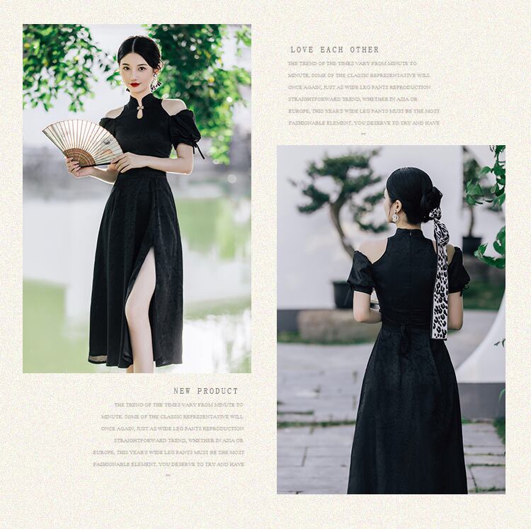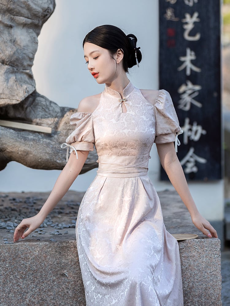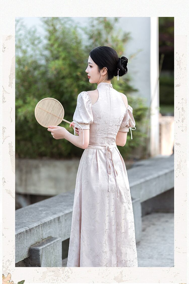 チャイナ風ワンピース 2色 パフスリーブ 改良型チャイナドレス チャイナ風服 チャイナボタン オシャレ 大人可愛い