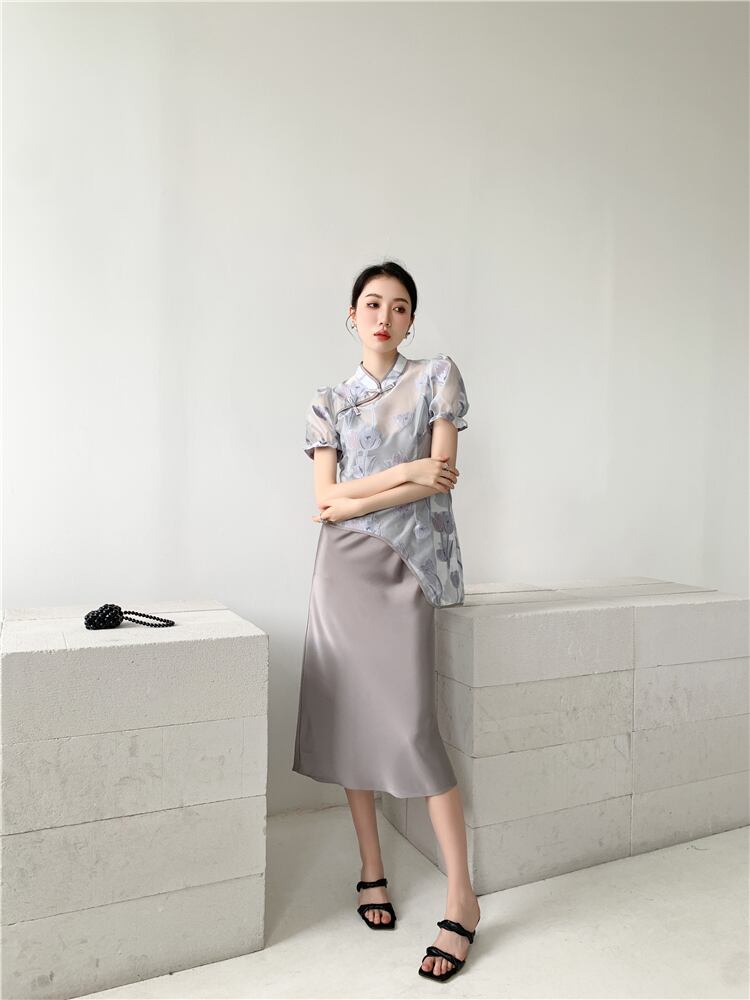 チャイナ風 トップス+キャミソールワンピース 2点セットアップ 不規則 チャイナボタン チャイナ風服 おしゃれ 女子会 同窓会