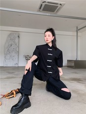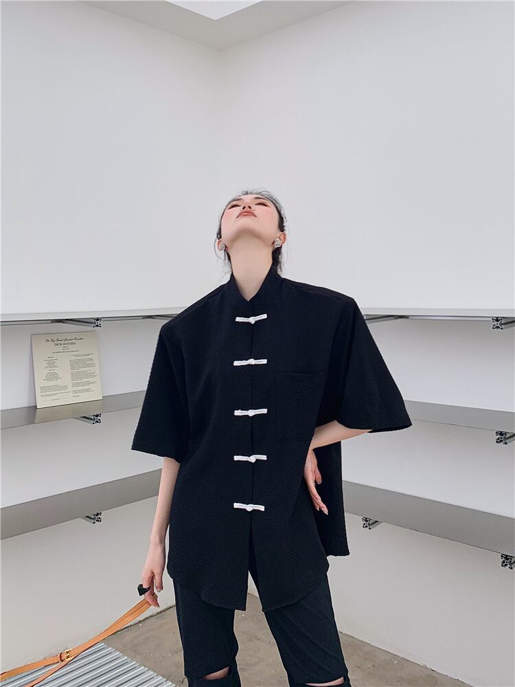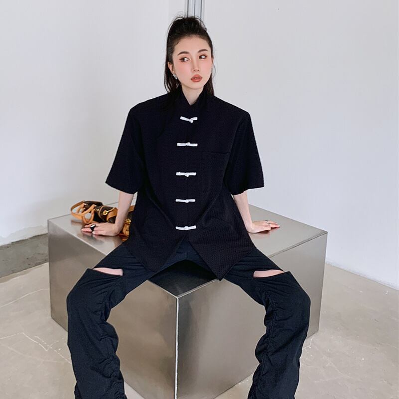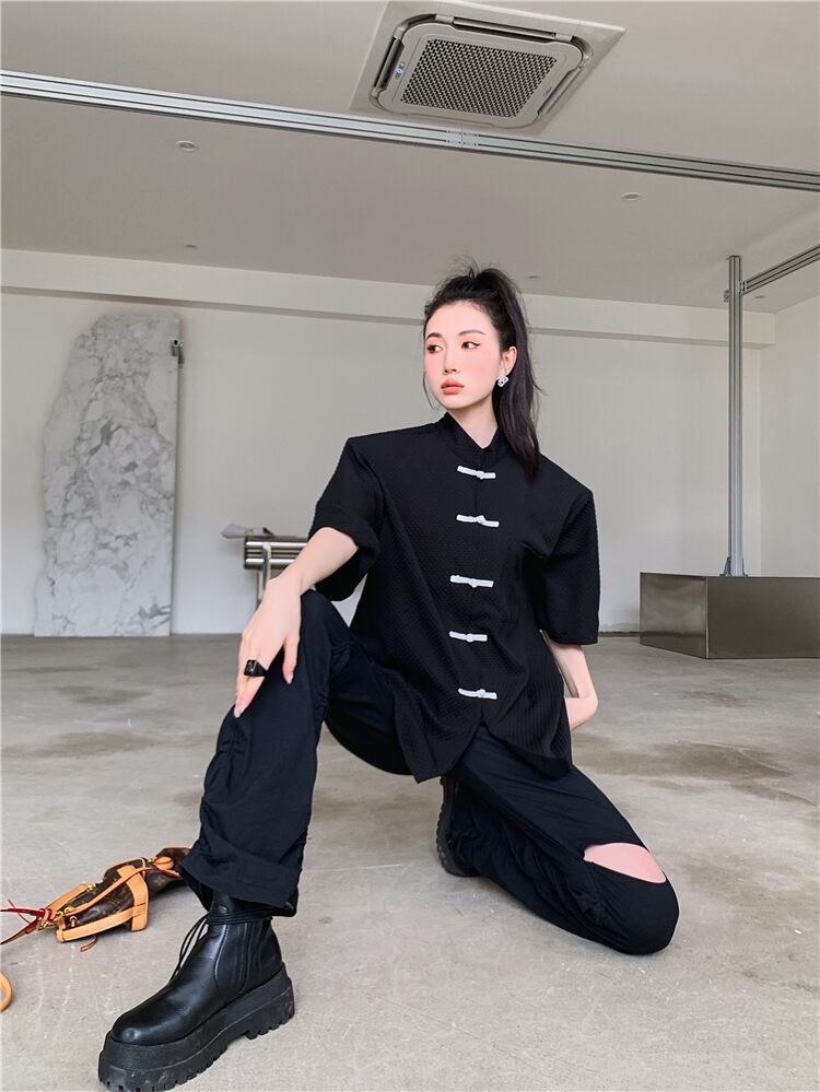 チャイナ風Tシャツ チャイナボタン 半袖 ルーズ チャイナ風服 オリジナル シンプル 普段着