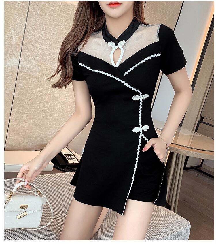 二点セット 改良型チャイナドレス 半袖 チャイナドレス+ホットパンツ チャイナボタン 女子会 同窓会 お呼ばれ