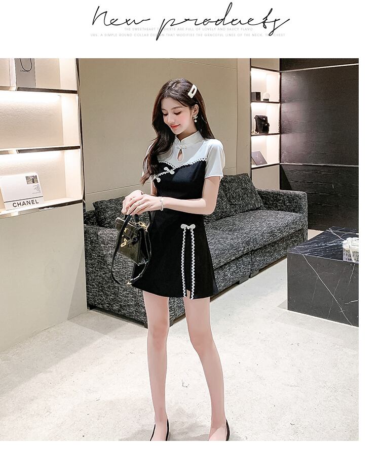 二点セット 改良型チャイナドレス 半袖 配色 チャイナドレス+ホットパンツ チャイナボタン チャイナ風服 女子会 同窓会 お呼ばれ