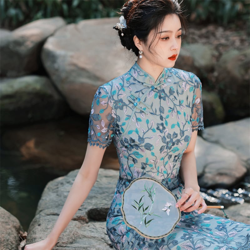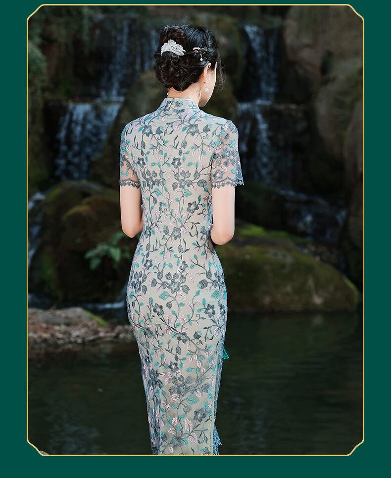 刺繍 チャイナドレス 半袖 チャイナ風服 チャイナ服 女子会 同窓会 お呼ばれ