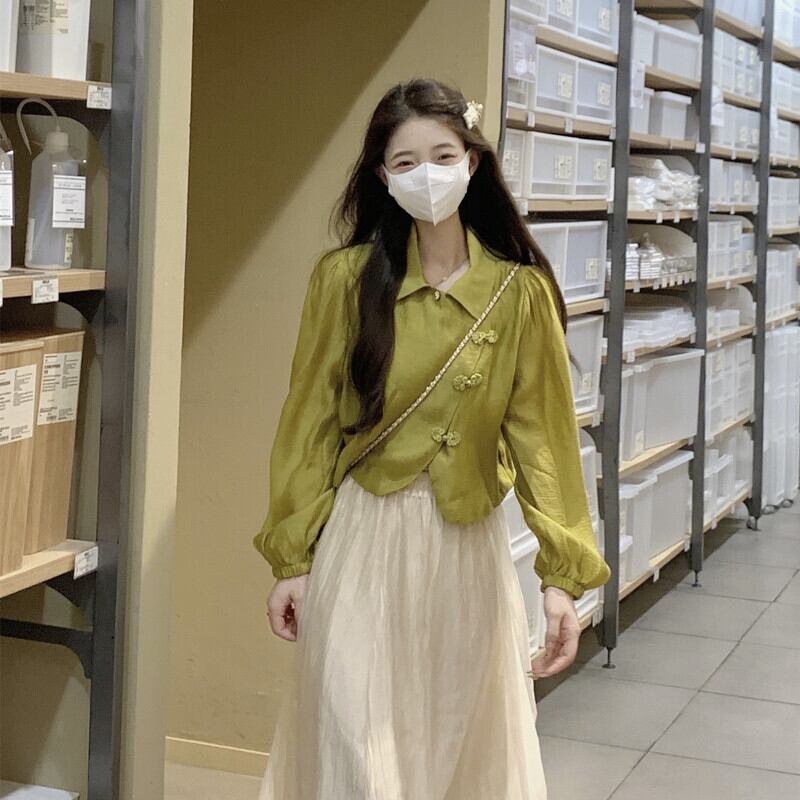 チャイナ風服 長袖 2色 チャイナボンタン オリジナル ホワイト グリーン かわいい