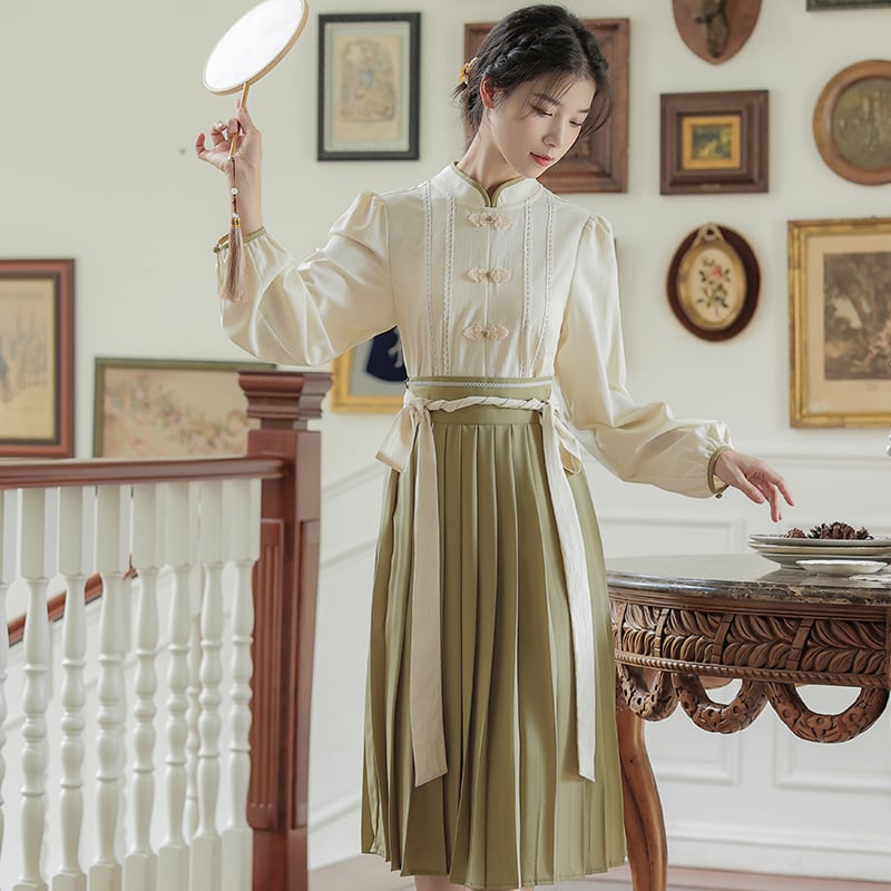 チャイナ風ブラウス+スカート 二点セット 長袖 改良型漢服 チャイナ風服 オシャレ