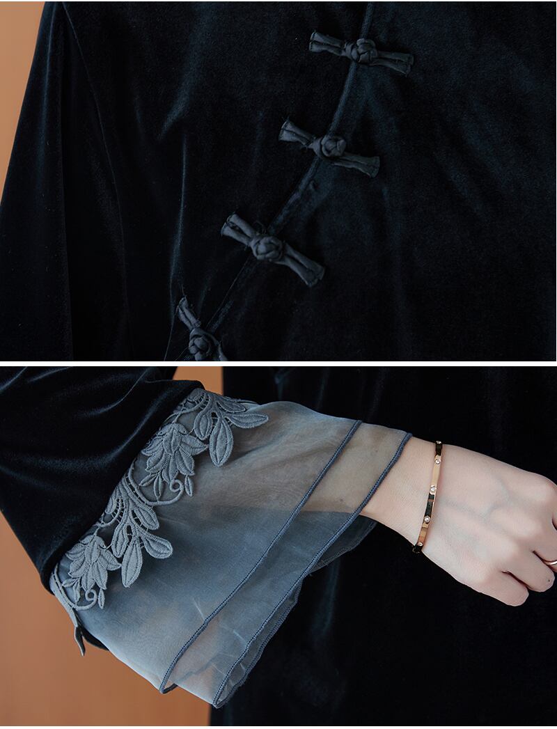 チャイナ風服 ベルベット不規則 切り替え 長袖 チャイナ風服 チャイナボタン 中華服