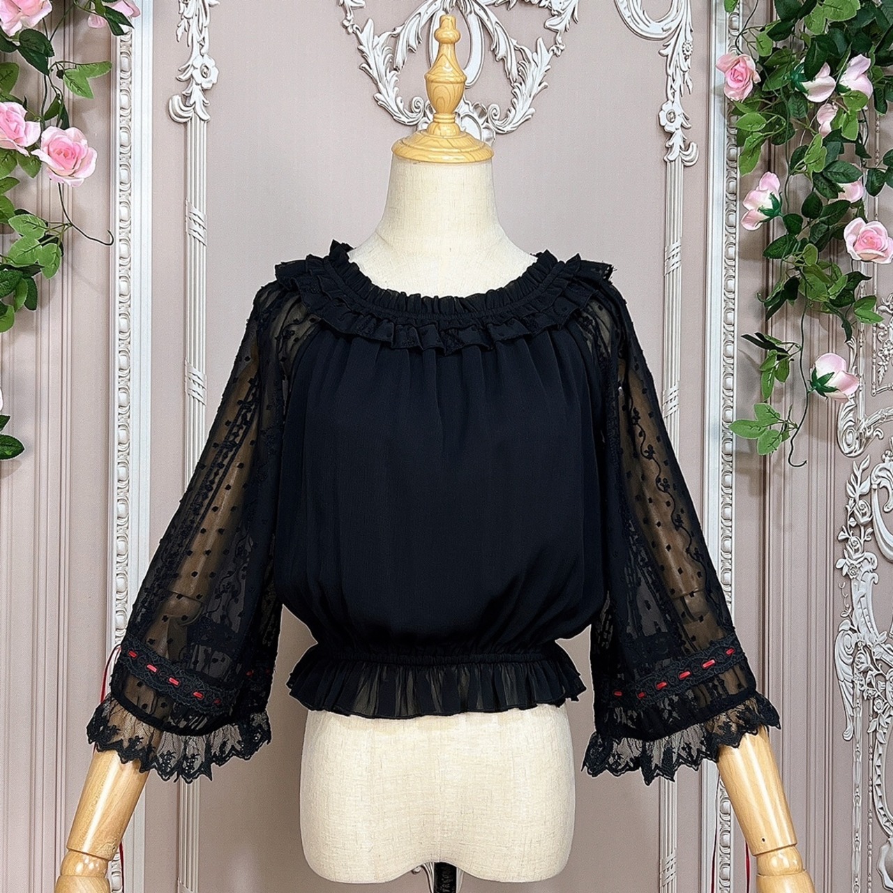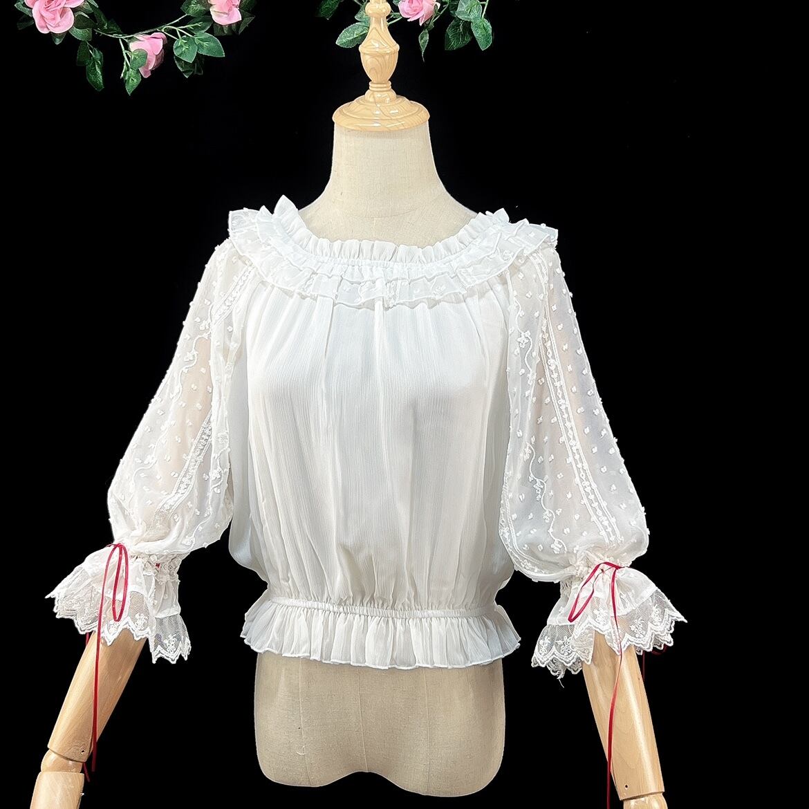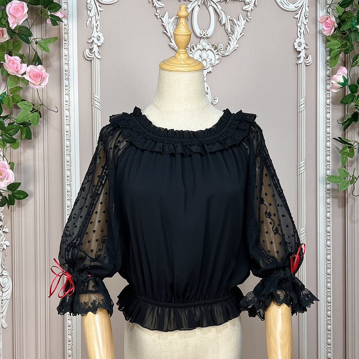 ロリータ ブラウス 2色 七分袖 スピーカースリーブ Lolita 姫様 洋服 ロリータファッション
