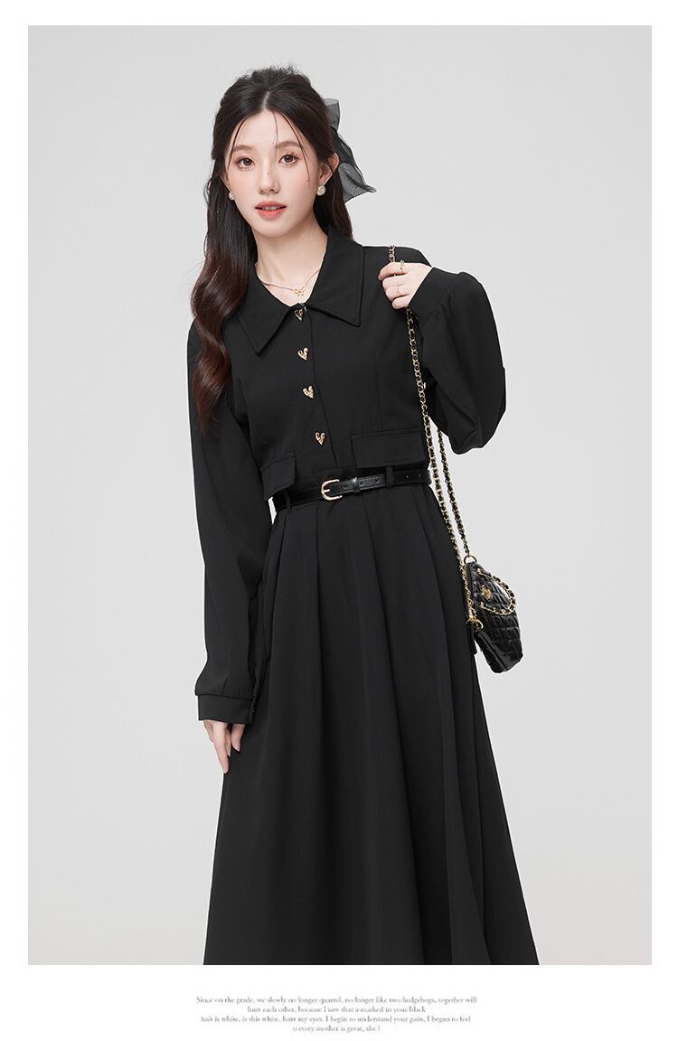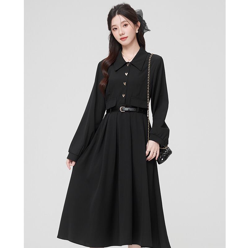 エレガント ワンピース 折り襟 長袖 ハイウェスト 着痩せ オリジナル かわいい