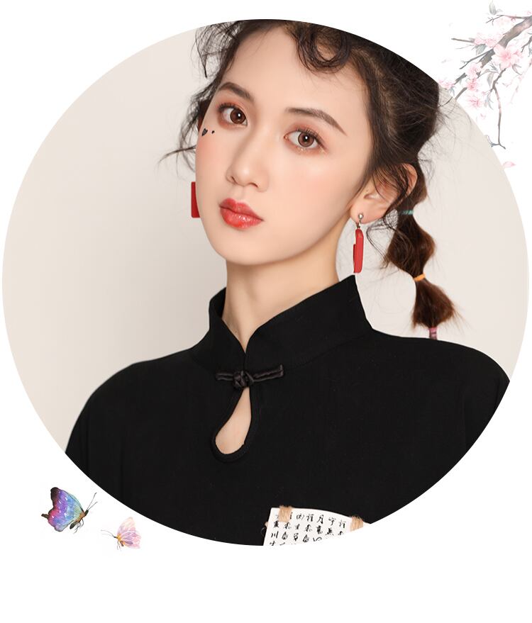 人気 チャイナ風 Tシャツ チュニック 漢字 チャイナボタン 改良唐装 チャイナ風服