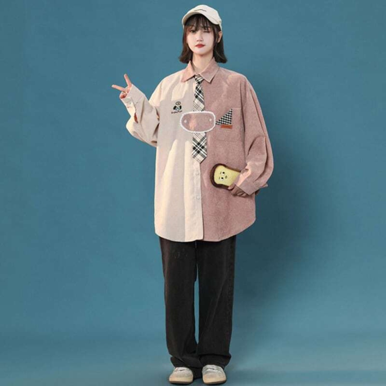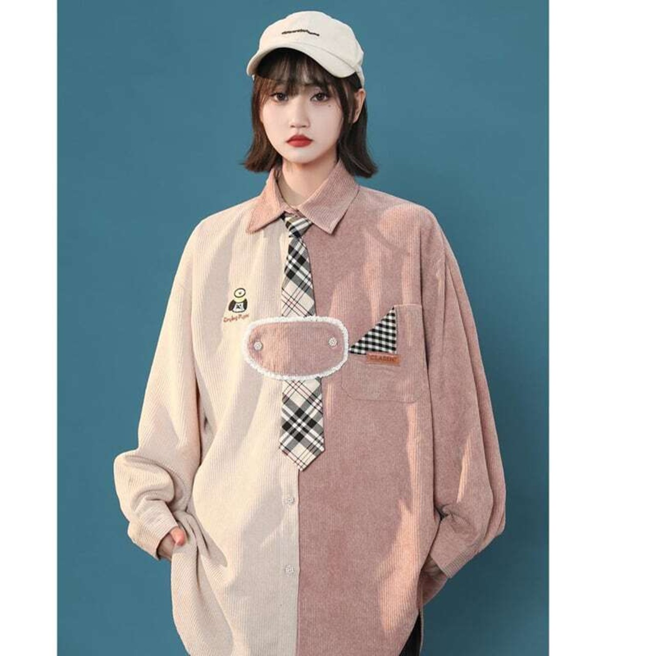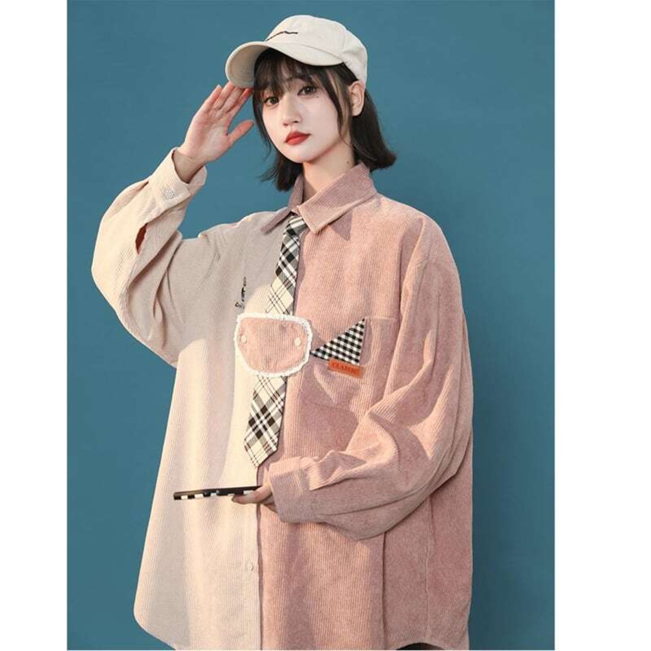2色 ブラウス POLOネック ネクタイ付き 長袖 オリジナル 可愛い 着痩せ 大きいサイズ