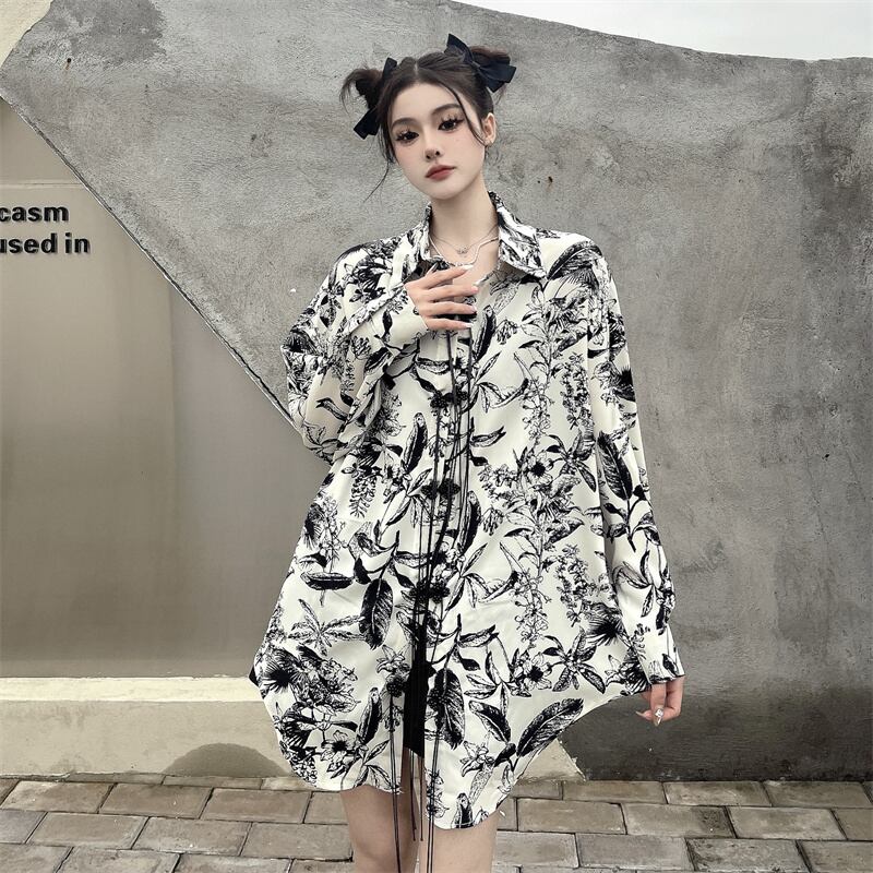 チャイナ風 ブラウス チャイナボタン 長袖 オリジナル ルーズ