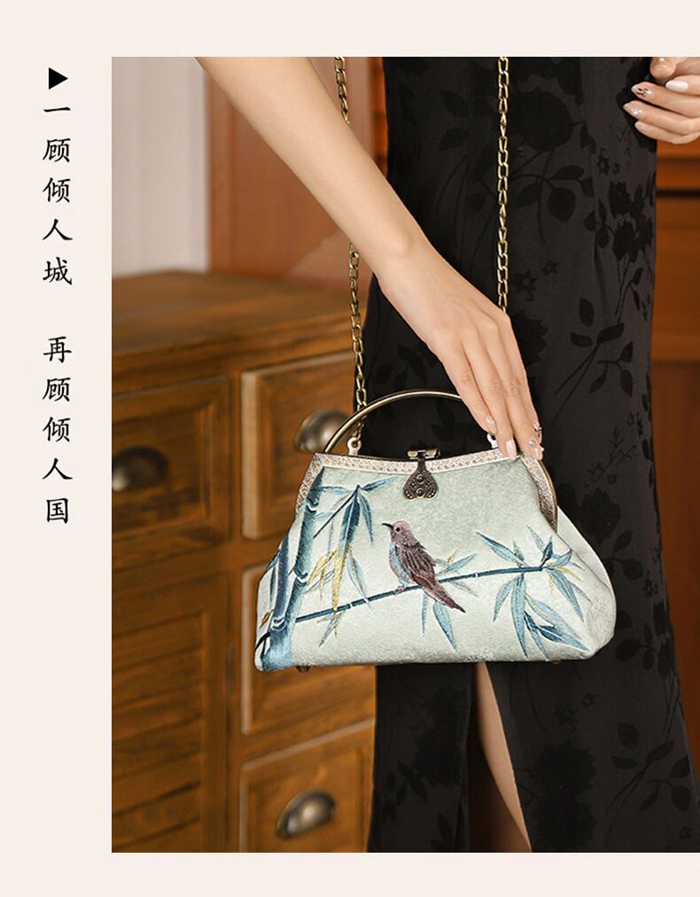 可愛い 刺繍 バッグ 2色 チャイナ風バッグ パーティーバッグ 手持ちバッグ クラッチバッグ