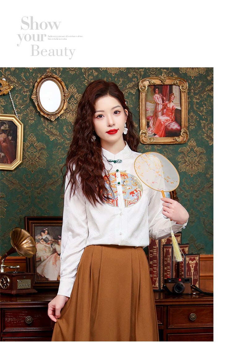 刺繍 ブラウス チャイナ風ブラウス 長袖 チャイナ風服 チャイナボタン 中華服 大きいサイズ
