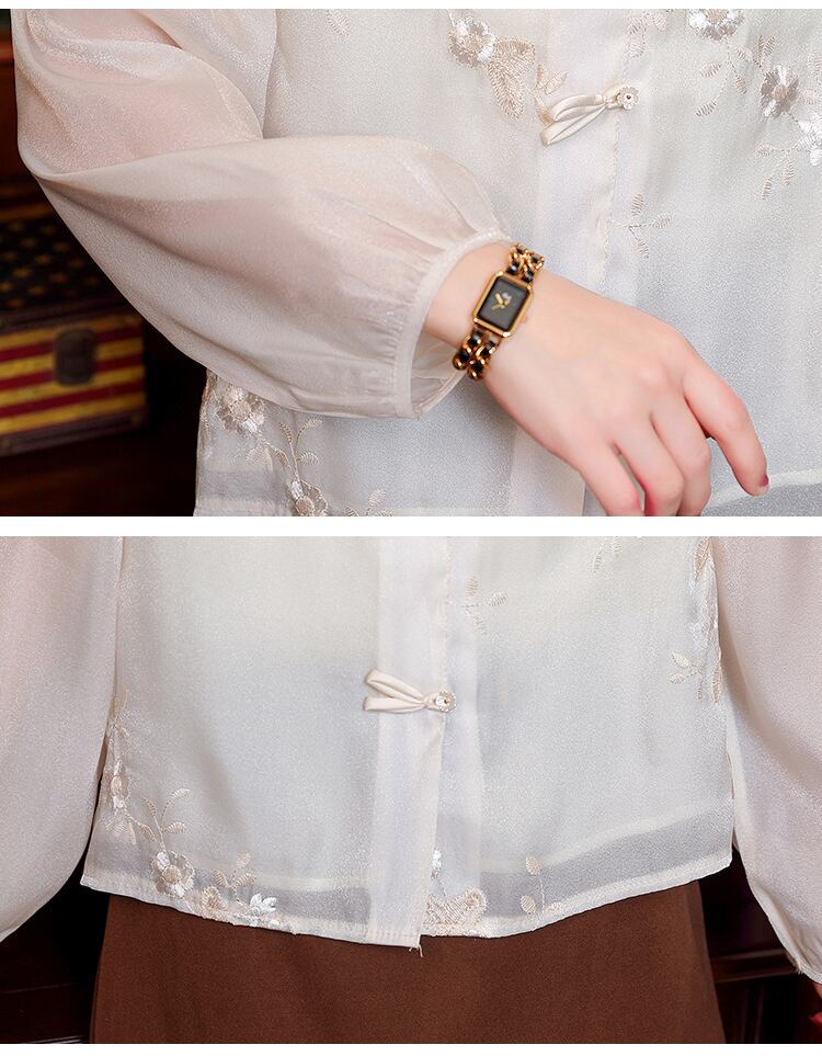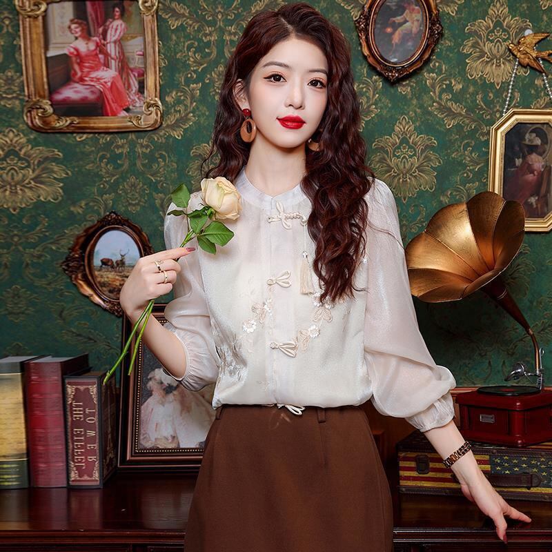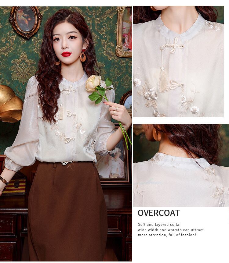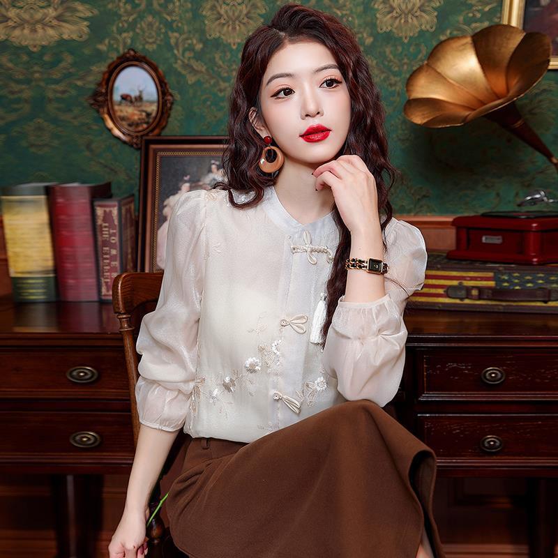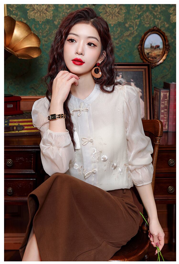 刺繍 ブラウス チャイナ風ブラウス 長袖 チャイナ風服 チャイナボタン 中華服 洋服 大きいサイズ
