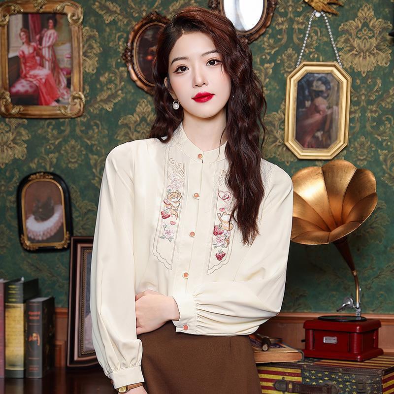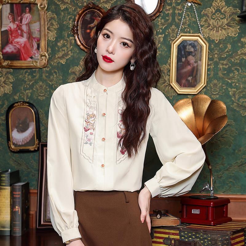 可愛い 刺繍 ブラウス チャイナ風ブラウス 長袖 チャイナ風服 チャイナボタン洋服 大きいサイズ