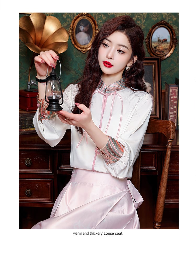 チャイナ風ブラウス 長袖 チャイナ風服 チャイナボタン 中華服 大きいサイズ