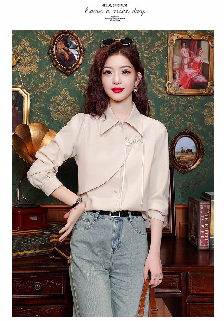 2色 チャイナ風ブラウス 長袖 チャイナ風服 チャイナボタン 中華服 大きいサイズ