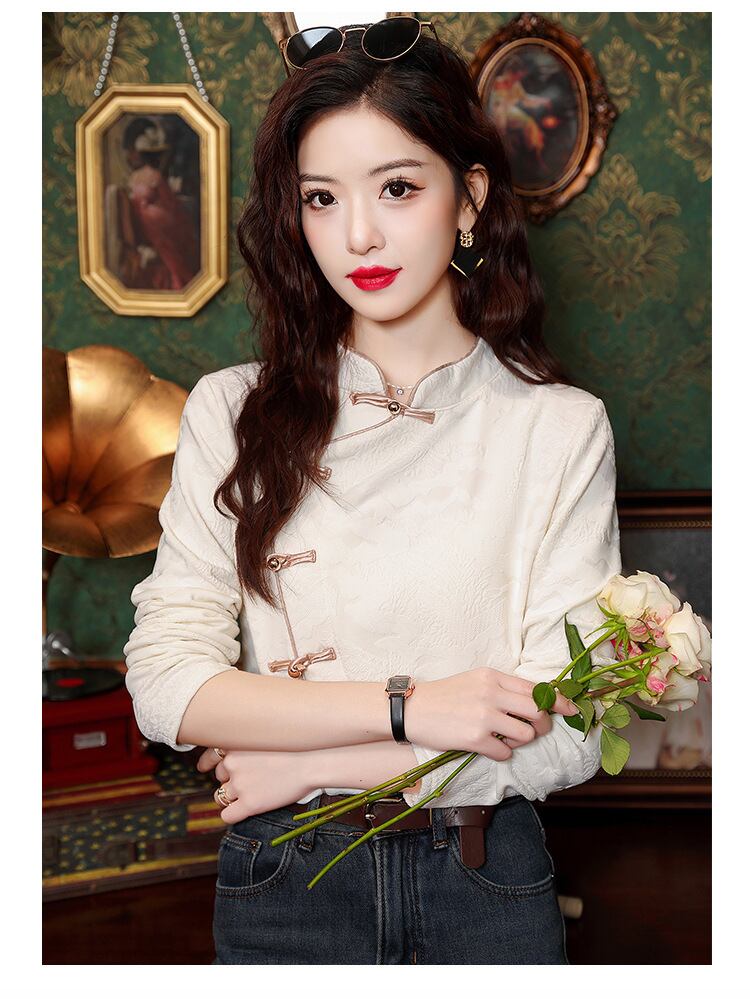 2色 チャイナ風ブラウス 長袖 チャイナ風服 チャイナボタン 中華服