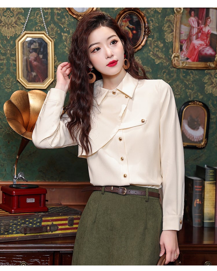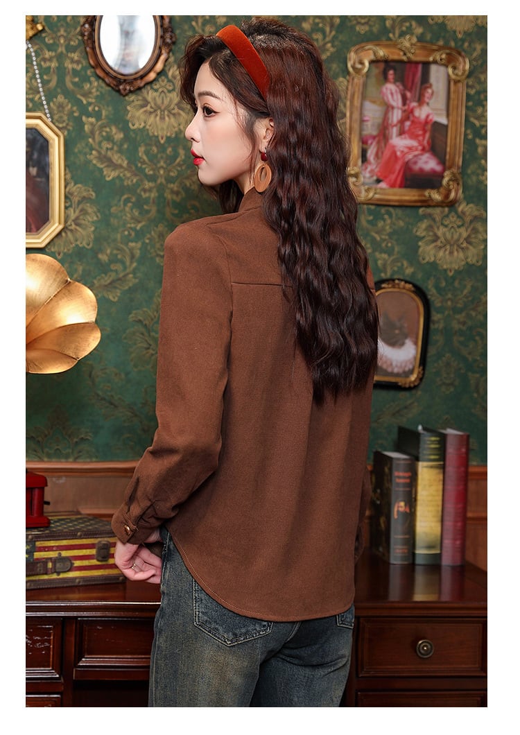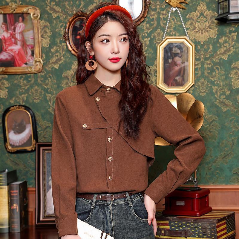 2色 カジュアル ブラウス 長袖 レトロ シャツ