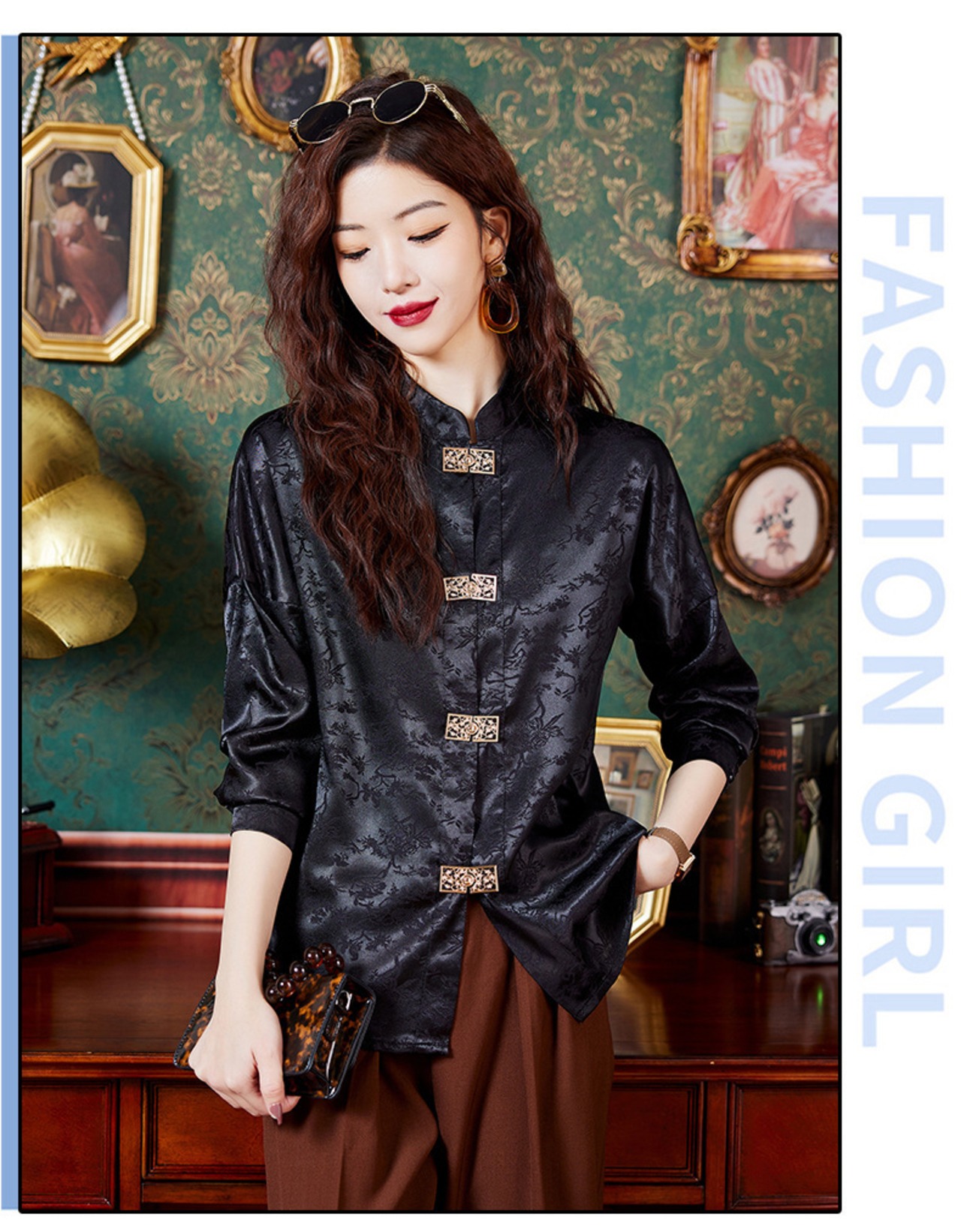 チャイナ風ブラウス 2色 スタンドネック 長袖 チャイナ風服 チャイナボタン 中華服 ブラウス