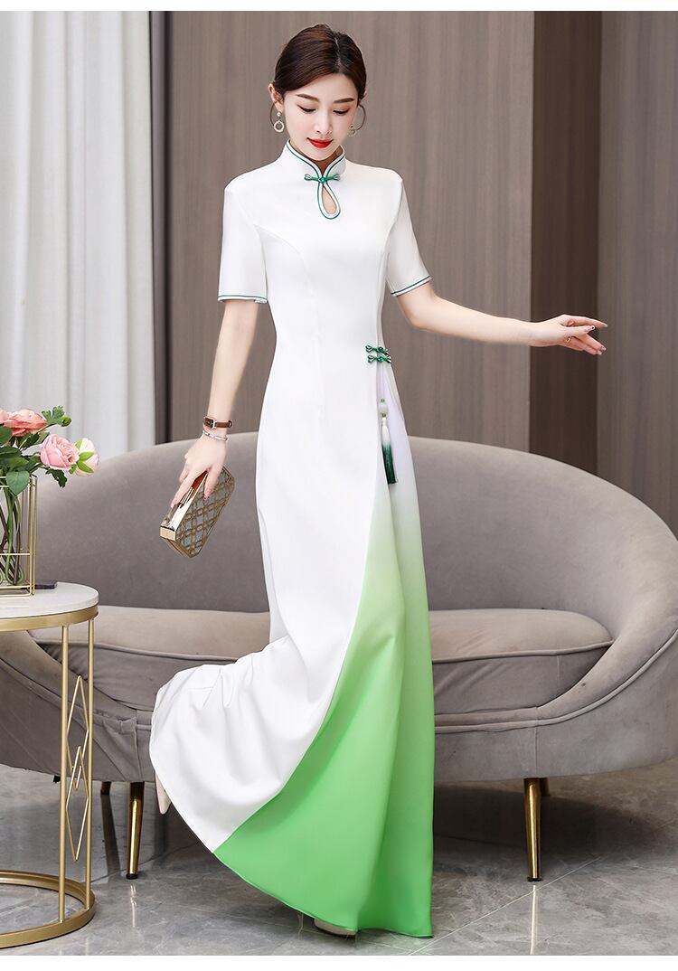 エレガント アオザイ 民族服 ロングドレス サイドスリット スタンドネック 二次会 謝恩会 デート お呼ばれ 大きいサイズ