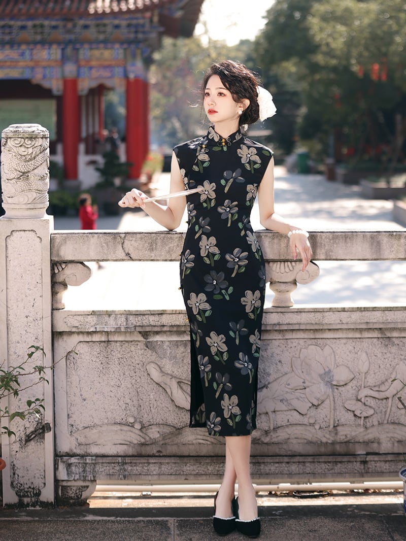 スリーブレス チャイナドレス 2色 チャイナ風服 改良型チャイナドレス 洋服 大きいサイズ