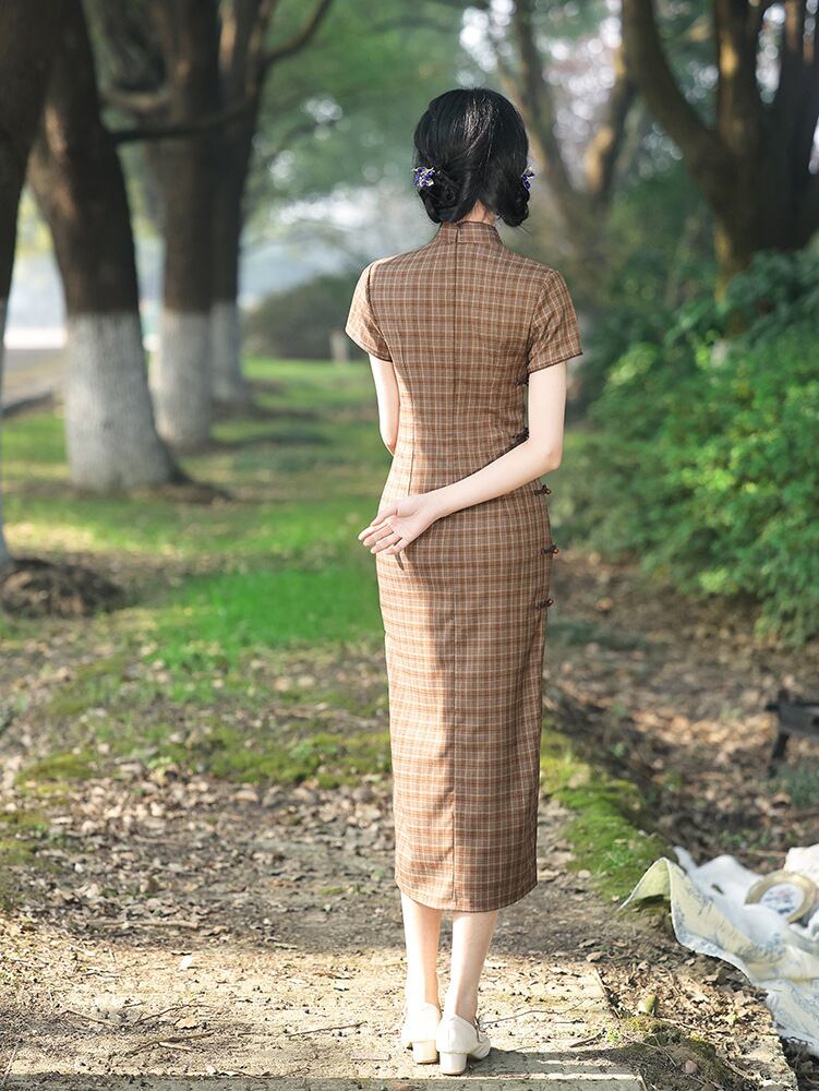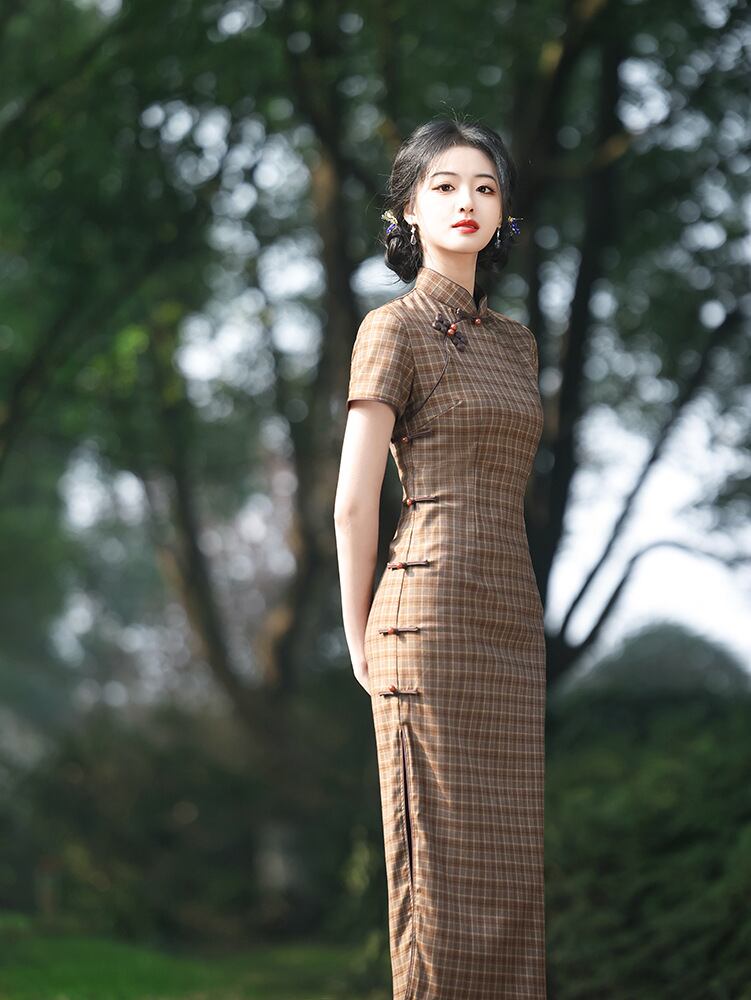 チェック柄 チャイナドレス 2色 チャイナ風服 改良型チャイナドレス 洋服 大きいサイズ
