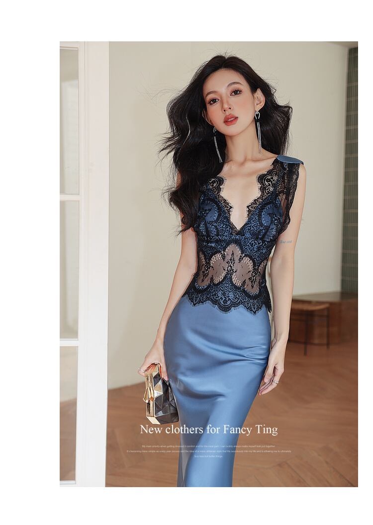 2色 レース ワンピース Vネック セクシー 女子会 オリジナル 女子会 同窓会 お呼ばれ 二次会