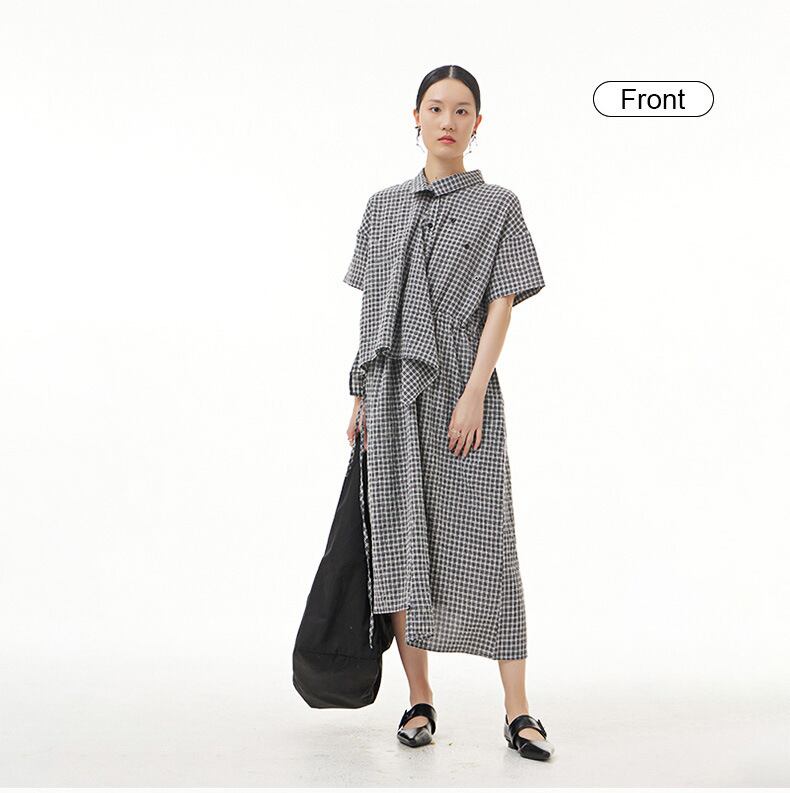 チェック柄 ワンピース 2色 半袖 オリジナル フレアワンピース