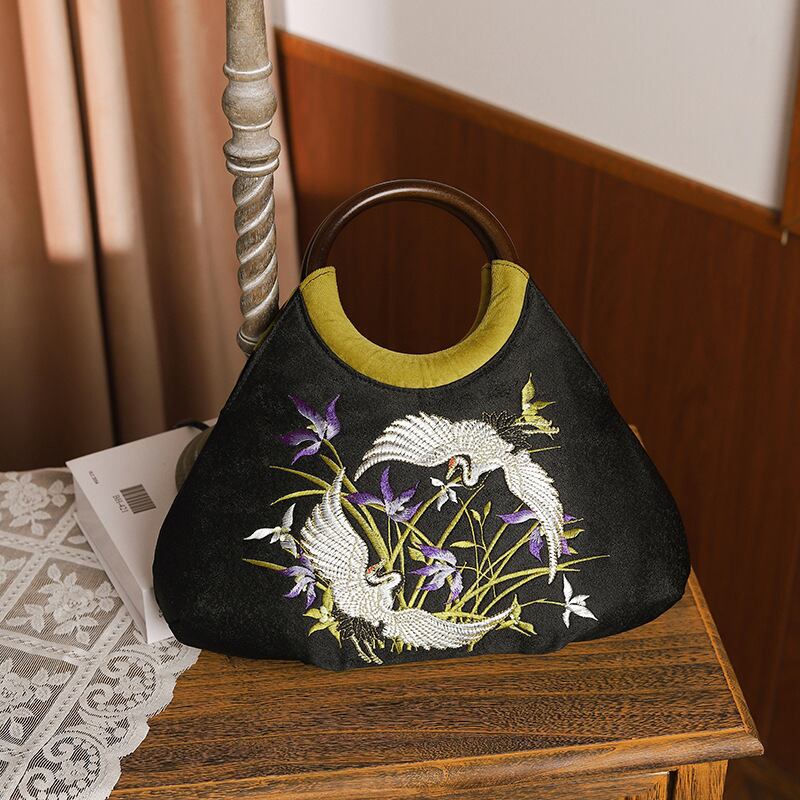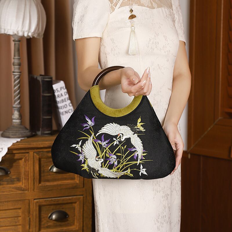 鶴 刺繍 バッグ チャイナ風バッグ パーティーバッグ 手持ちバッグ チャイナドレスバッグ クラッチバッグ